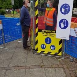 Numerose le misure di sicurezza che sono state adottate: la Piazza dove si svolge il mercato è stata tutta transennata e sono stati istituiti solo 2 varchi, uno per l’ingresso e l’altro per l’uscita delle persone dall’area. L’accesso è avvenuto in modo contingentato e solo dopo aver effettuato la misurazione corporea. Presente un varco ingresso dove un colore rosso o verde indicava la possibilità o meno di entrare nella zona. Il passaggio successivo conduceva all’area guanti dove, chi ne era sprovvisto, poteva prenderli ed utilizzarli. Tutte le bancarelle sono state organizzate e posizionate in modo da essere lontane le une dalle altre con l’attenzione di evitare assembramenti davanti ai banchi. Presente al varco d’uscita un dispositivo di conteggio aggiornato costantemente con l’ingresso. Prevista la permanenza contemporanea di 50 persone che ovviamente hanno mantenuto anche tutte le distanze di sicurezza necessarie.