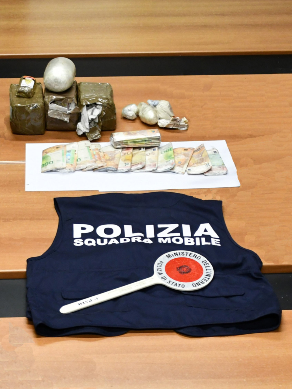Scovati quasi 6 chili di cocaina, eroina e hashish, 19 mila euro in contanti, due fucili a canna lunga e numerosi cellulari