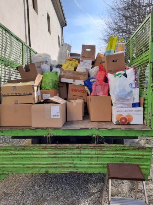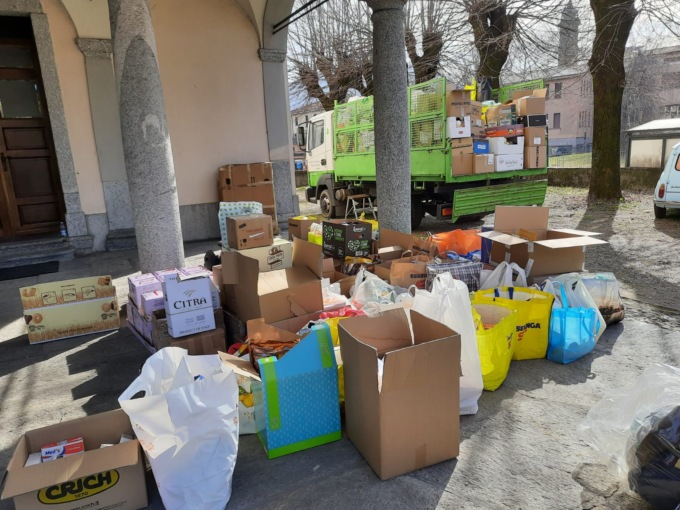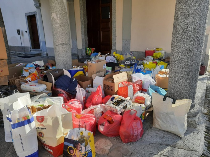 Pasta, farina, omogeneizzati, biscotti, cerotti, calze, mutande… Sono tantissimi i beni di prima necessità – tra alimenti a lunga scadenza (anche per la prima infanzia), farmaci da banco, abbigliamento, prodotti per la pulizia personale e cibo per cani e gatti – che sono stati raccolti nella mattinata di oggi, mercoledì 2 marzo, sul sagrato della chiesa di San Leonardo a Brivio. I volontari di “Brivio che dona” hanno voluto fare la loro parte, insieme alle tante altre iniziative che sono state organizzate sul territorio. “Non sono arrivati pacchi solo dai comuni limitrofi, ma dall’intero territorio brianzolo – hanno raccontato alcune volontarie soddisfatte – Abbiamo riempito due camion e due furgoncini grazie alla solidarietà della popolazione”.