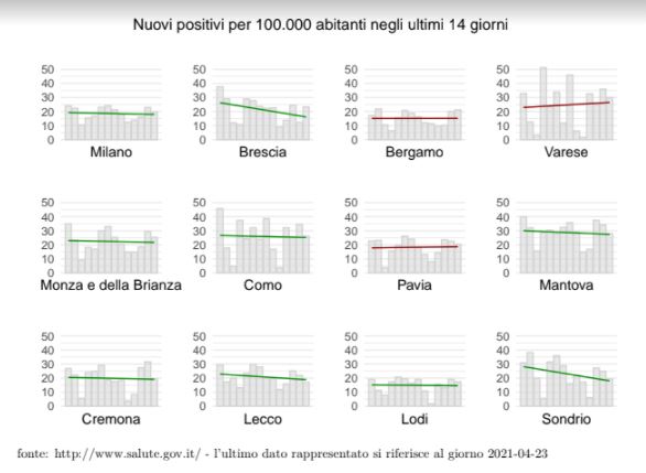 Ad oggi l’incidenza in provincia di Lecco, ovvero il numero di casi di positività al Covid ogni 100mila abitanti è a 133. In dato inferiore a quello della Lombardia  Lombardia  (139) e a quello dell’Italia (157).