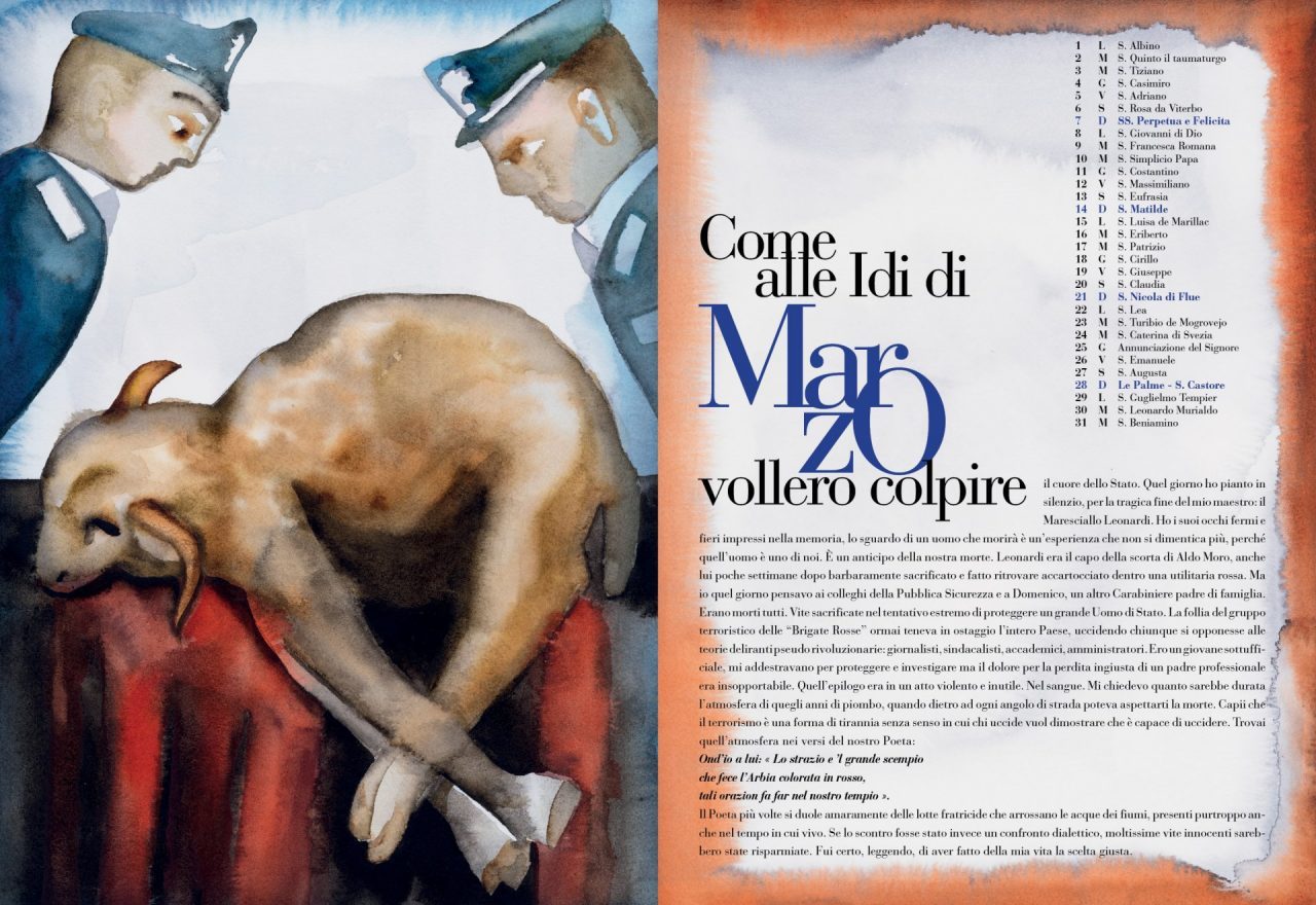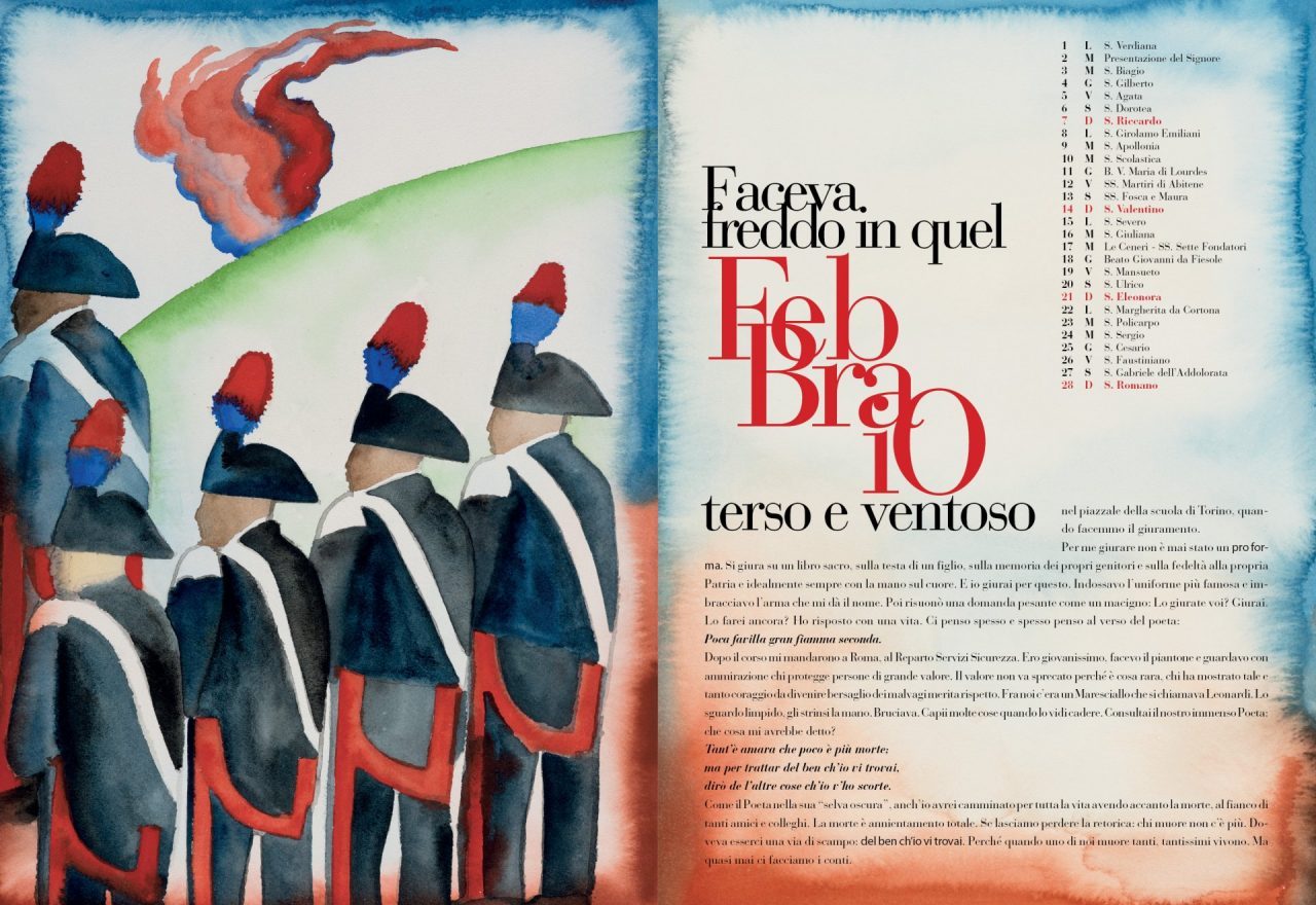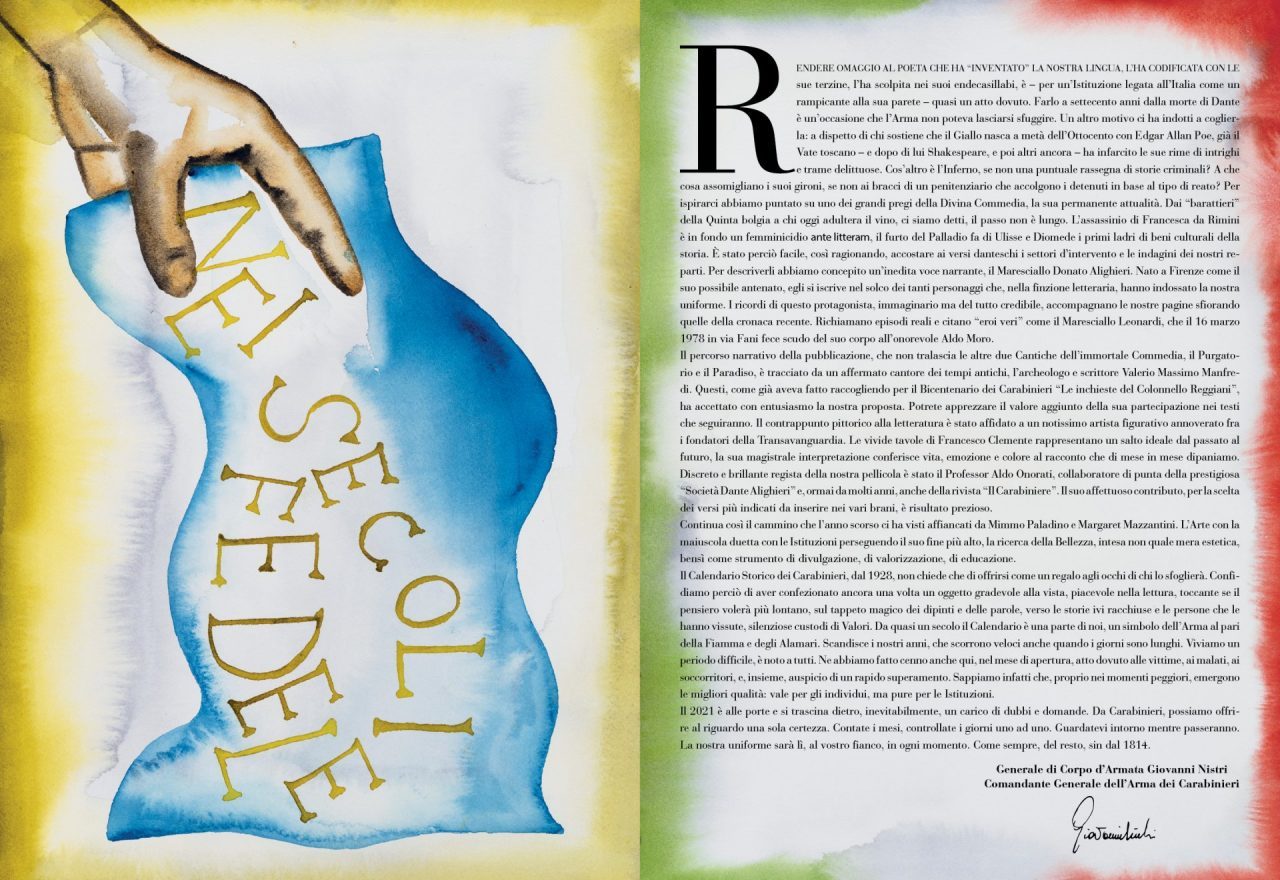 Per il Calendario Storico del 2021, l’Arma dei Carabinieri si è affidata alla penna di Valerio Massimo Manfredi, cantore e custode della storia antica, e alle tavole realizzate da un esponente della Transavanguardia italiana, Francesco Clemente.