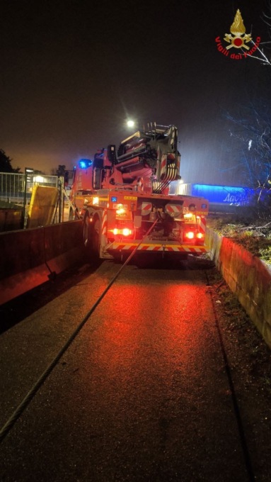 Sul posto, intorno alle 19, è intervenuta una squadra dei Vigili del Fuoco con autopompa e autogru provenienti dalla centrale operativa, supportata da un’altra autopompa del distaccamento di Valmadrera. Data la complessità della situazione, è stata coinvolta anche una seconda gru privata per completare con successo il recupero del mezzo pesante.
