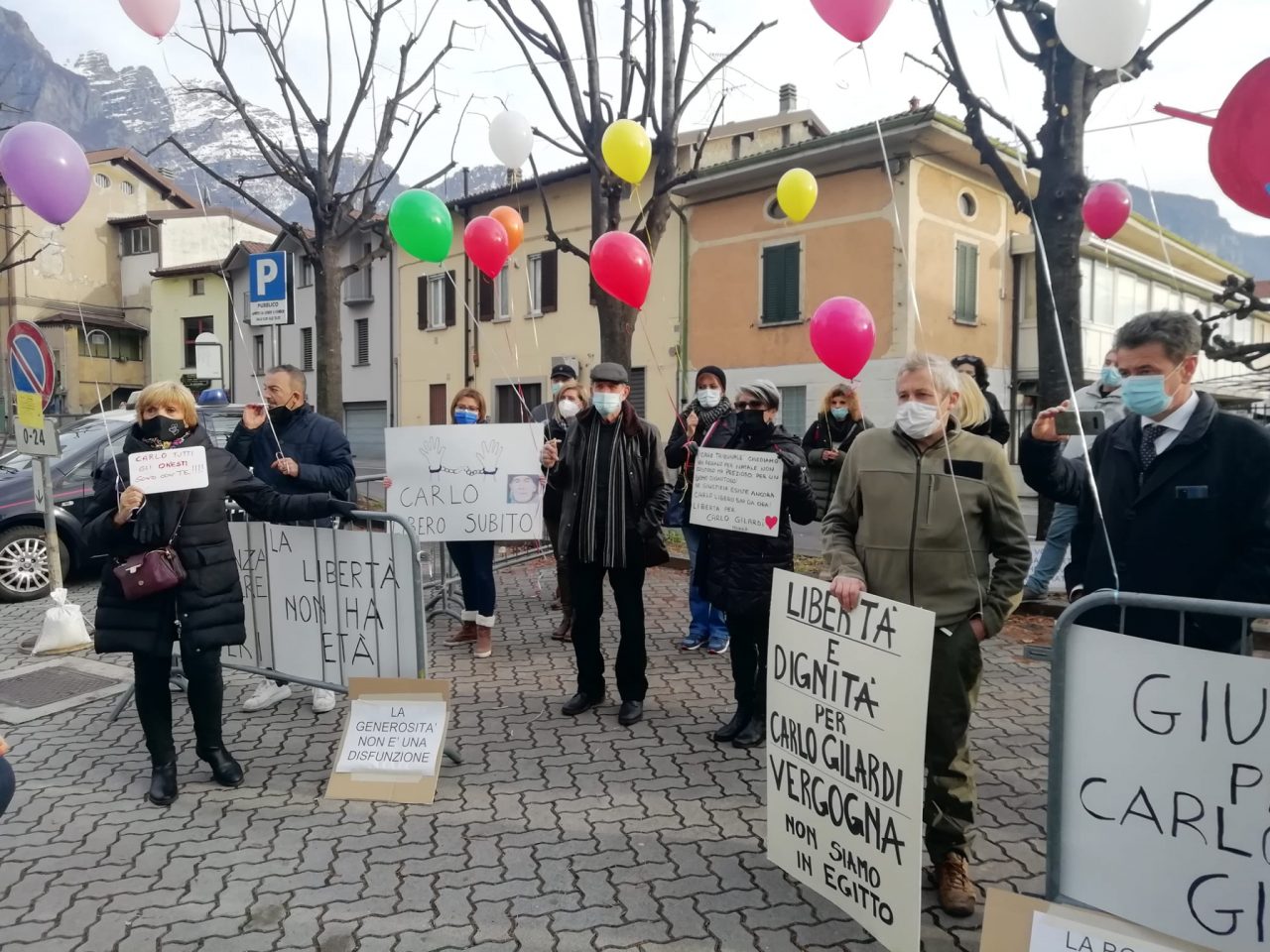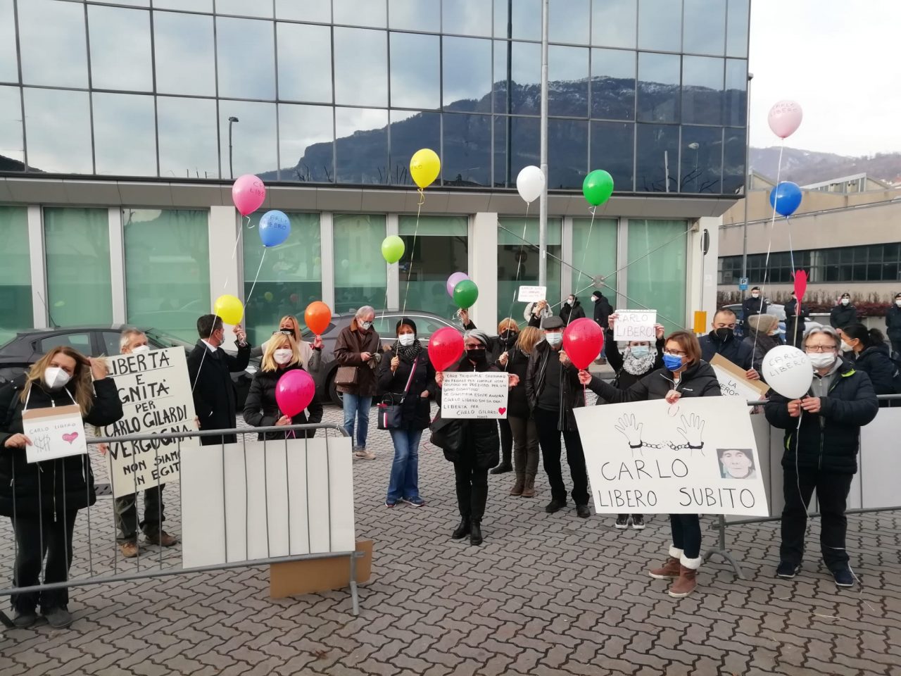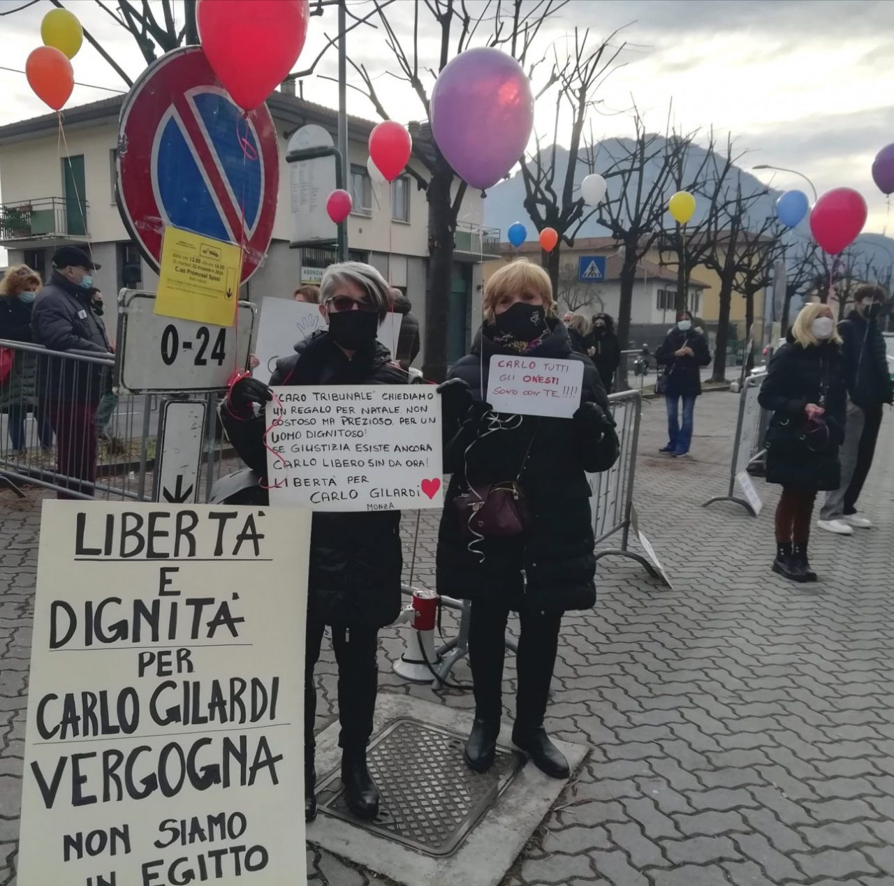 Dopo quella andata in scena sabato 12 dicembre davanti alla casa di riposo Airoldi e Muzzi, dove dallo scorso ottobre il professor Carlo Gilardi di Airuno è ospitato, oggi, martedì 22 dicembre 2020 una trentina di persona ha preso parte a una nuova manifestazione che questa volta è stata organizzata davanti al tribunale di Lecco.