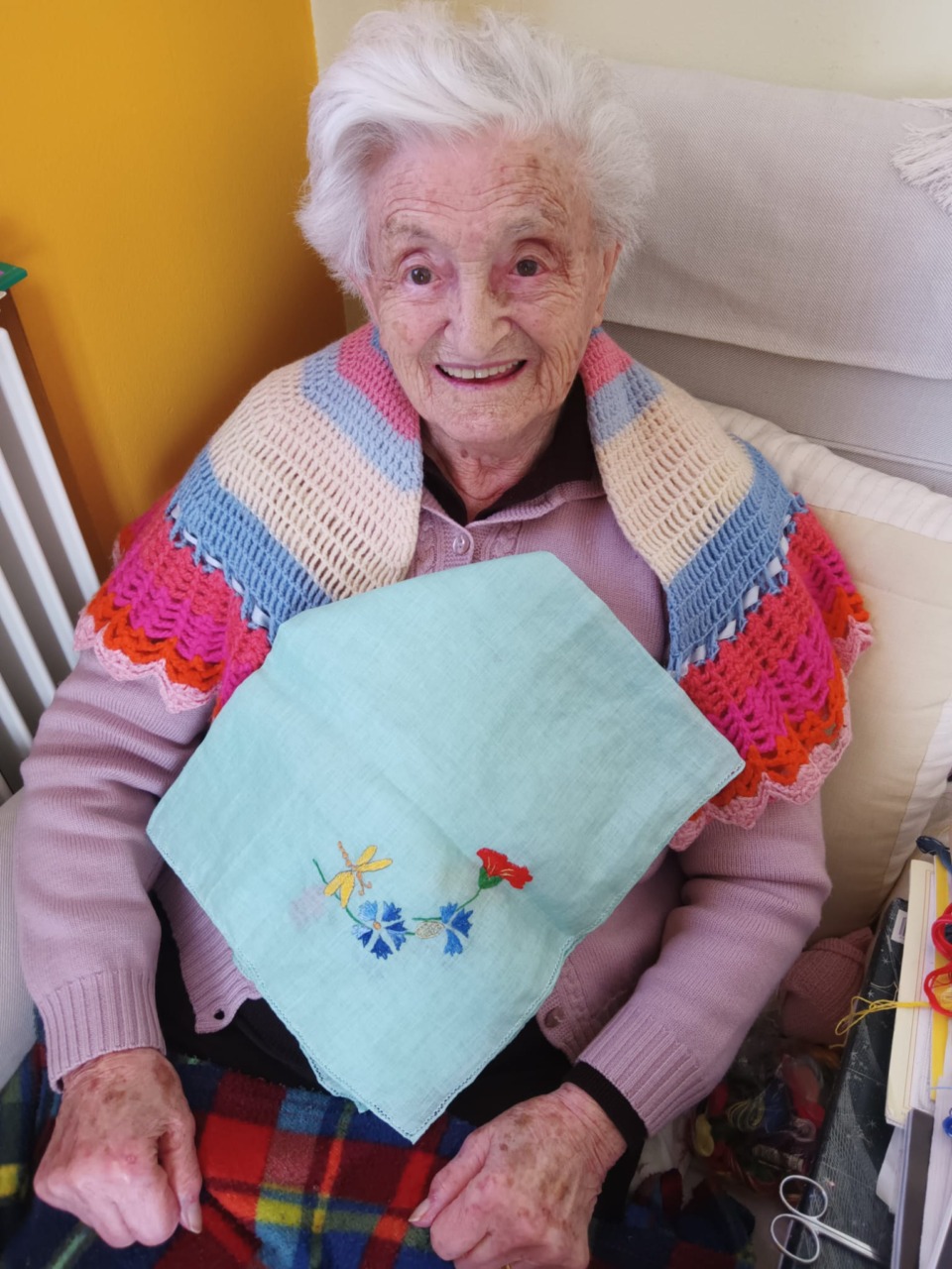 La signora Panzeri, trascorre le sue giornate leggendo ma soprattutto ricamando centrini, tovagliette e sottobicchieri. In previsione della visita del sindaco, ha infatti preparato una tovaglietta ricamata che poi gli ha regalato. Se al compimento del secolo di vita, le è stata donata una targa commemorativa, quest’anno il sindaco le ha regalato una borsetta colma di prodotti realizzati dagli artigiani di Missaglia: biscotti, miele e marmellate “autoctone”.