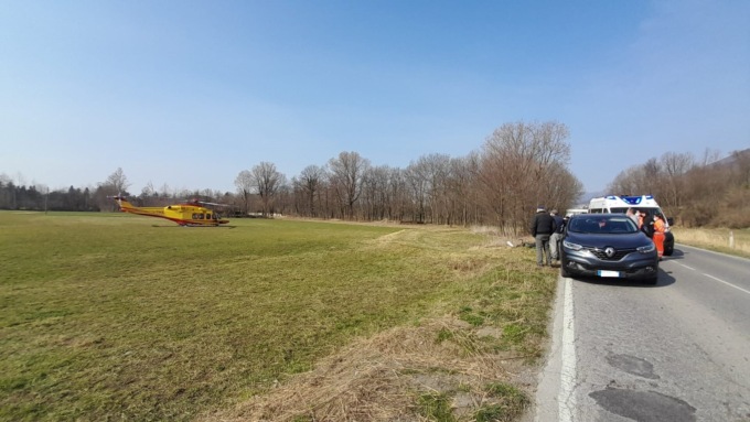 L’eliambulanza è atterrata situato nel campo a lato del luogo del sinistro. Ed è stato proprio il velivolo, dopo che il ciclista è stato stabilizzato, a trasferirlo, in condizioni critiche all’ospedale di Circolo di Varese.