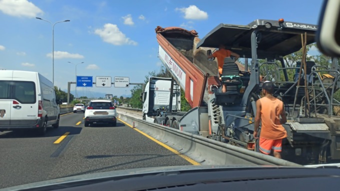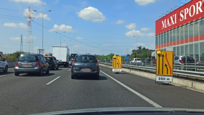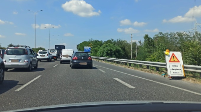 Proprio nel tratto appena menzionato è stato predisposto un restringimento di carreggiata perché sono in corso dei lavori di asfaltatura.