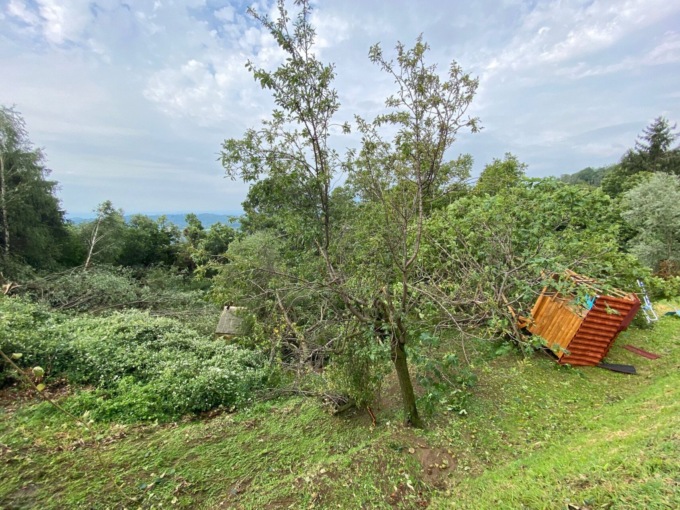 Curioso, il fatto che i danni siano stati registrati lungo una linea retta, ben precisa, che attraversa idealmente le due frazioni creando una “lingua” di terra larga qualche centinaio di metri, risparmiando invece la vegetazione circostante miracolosamente ancora in piedi e senza danni.