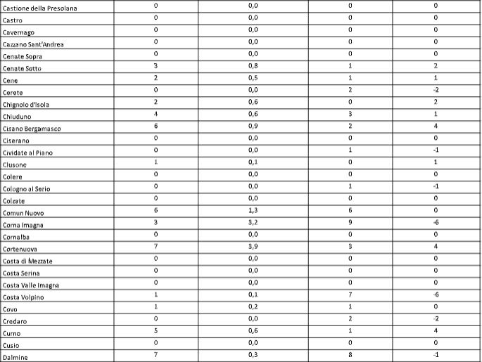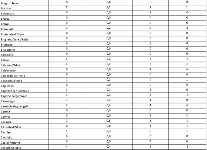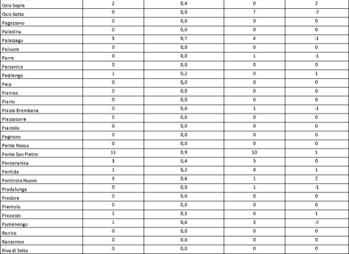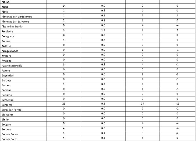 “Il territorio afferente all’ambito della Valle Imagna e di Villa d’Almè – aggiunge l’Ats -, che la scorsa settimana mostrava ancora valori critici di incidenza, doppi rispetto alla media provinciale, presenta evidenti segnali di miglioramento (l’incidenza è passata da 68 a 28 nuovi casi ogni 100 mila abitanti). L’importante riduzione dei contagi ed il rientro della situazione critica è verosimilmente legato alle azioni di contenimento attivate in accordo con i sindaci della zona”.
