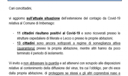Il sindaco Fabio Vergani ha comunicato oggi, 10 aprile 2020, i nuovi dati del contagio da Coronavirus a Imbersago.