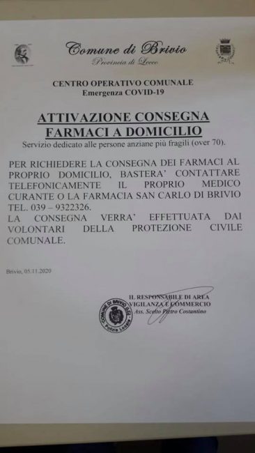 “Oggi abbiamo pianificato le prime misure di assistenza per il periodo del lockdown, riattivando il servizio di consegna dei farmaci a domicilio per i cittadini con più di 70 anni di età e anche per le persone non automunite o con difficoltà motorie che ne faranno richiesta. Nella locandina che segue potete leggere le istruzioni” ha spiegato il primo cittadino.