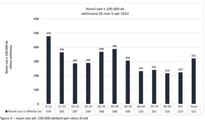 Come si evince dal grafico seguente, la classe di età più interessata continua ad essere gli under 12 anni, con tassi di incidenza in crescita rispetto alla settimana precedente.