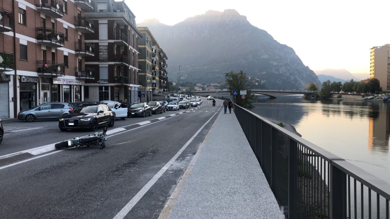Le operazioni di soccorso hanno notevolmente rallentato il traffico con lunghe code in uscita da Lecco e in entrambe le direzioni su via Roma.