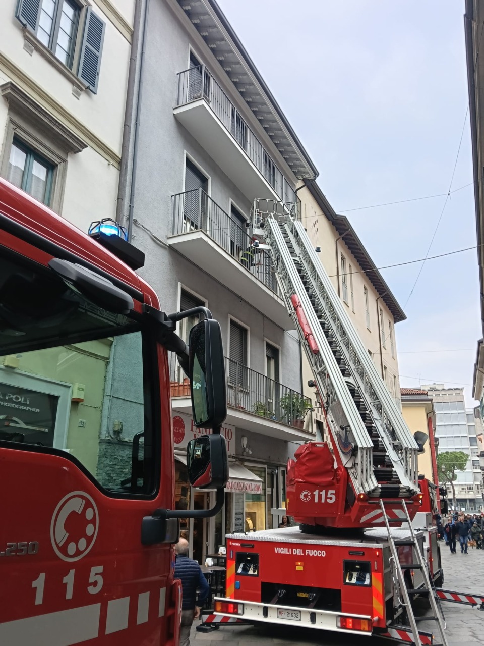 Per riuscire a entrare nell’abitazione, i Vigili del Fuoco hanno dovuto forzare la portafinestra del balcone esterno che si affaccia sulla via.