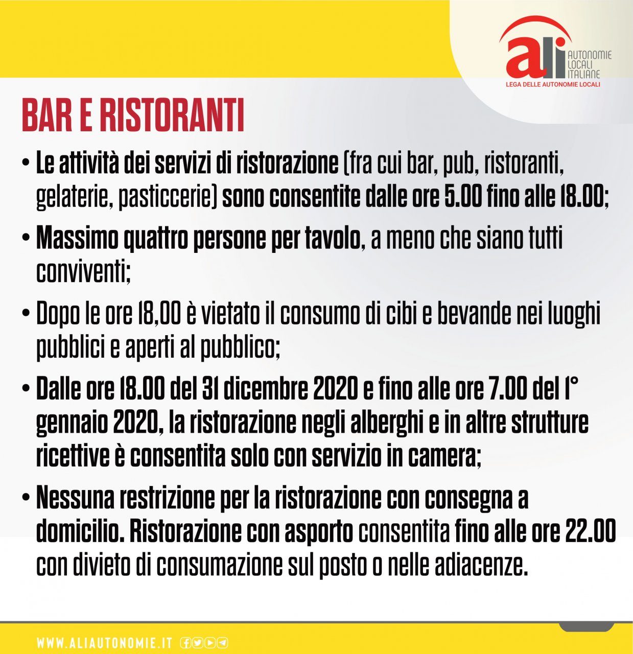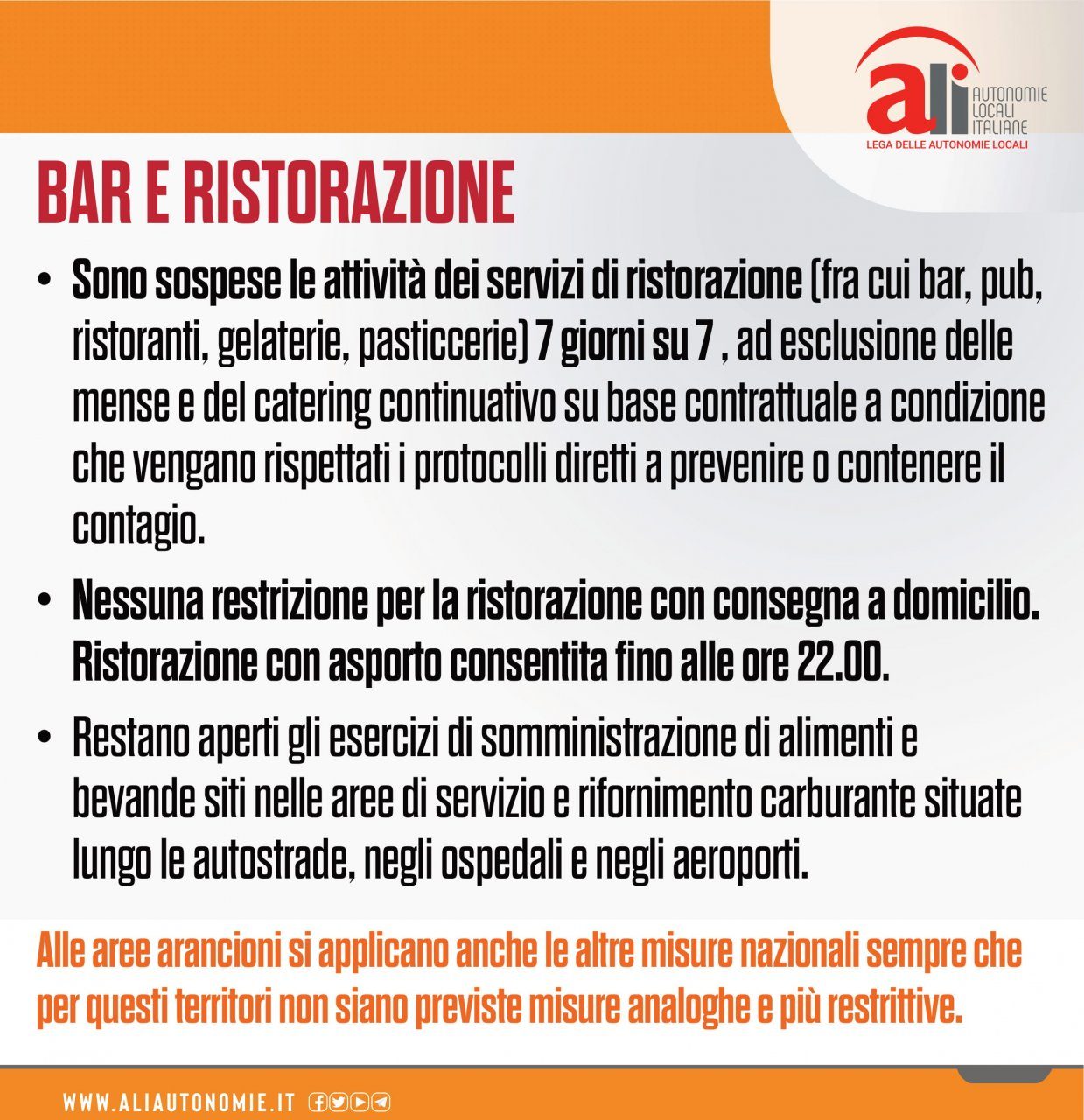 🍺🥃 I bar e ristoranti restano aperti a pranzo nelle aree gialle, con solo asporto e domicilio per la cena e solo asporto e domicilio per pranzo e cena in zone arancioni e rosse.