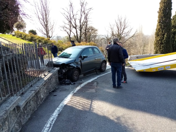 Incidente stradale questa mattina intorno alle 9.30 sui tornanti della collina di Tabiago. Coinvolta nell’incidente, avvenuto per cause da accertare, una Fiat 500 grigia che transitava in direzione Cibrone. L’auto si é schiantata in curva, in corrispondenza della grotta della Madonnina posta sotto la chiesa di Tabiago. Il conducente, un 75enne di Nibionno, ha perso conoscenza per diversi minuti ed é stato soccorso da un’autoambulanza della croce Verde di Bosisio Parini. Fortunatamente le condizioni dell’anziano si sono rivelate meno gravi del previsto e l’uomo è stato trasportato in codice verde all’ospedale di Erba. Sul posto per i rilievi e la viabilità i Carabinieri della stazione di Costa Masnaga e il personale della Polizia Locale. Sul luogo dell’incidente anche il vicesindaco Roberto Gemetto.