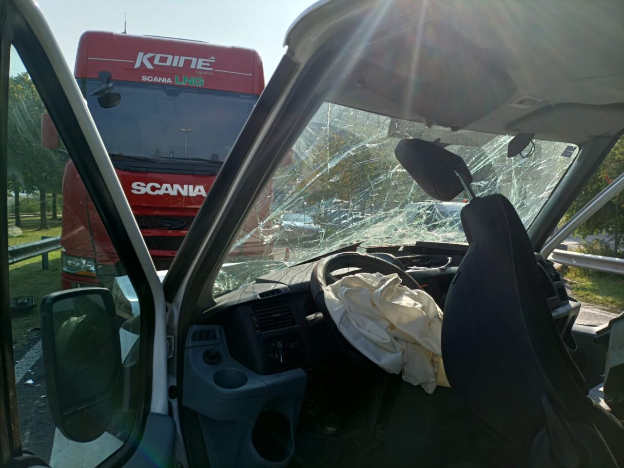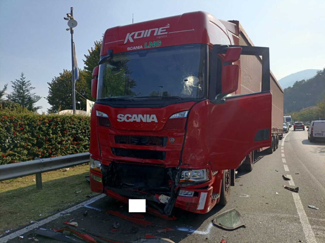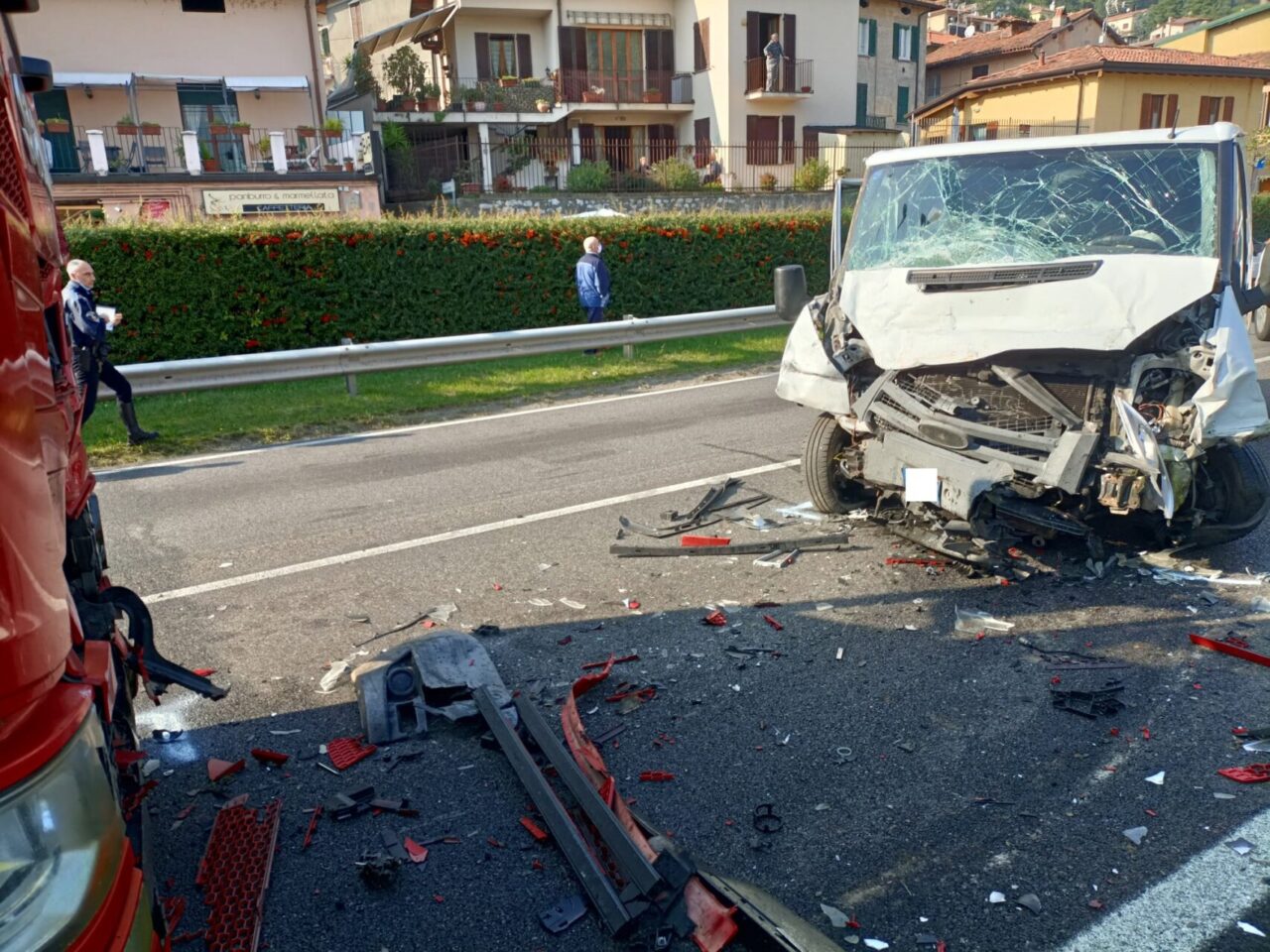 Devastante l’impatto tra un tir Scania, che procedeva in direzione Lecco, e un Ford Transit che viaggiava invece in direzione opposta. Letteralmente distrutta la parte anteriore del furgone.