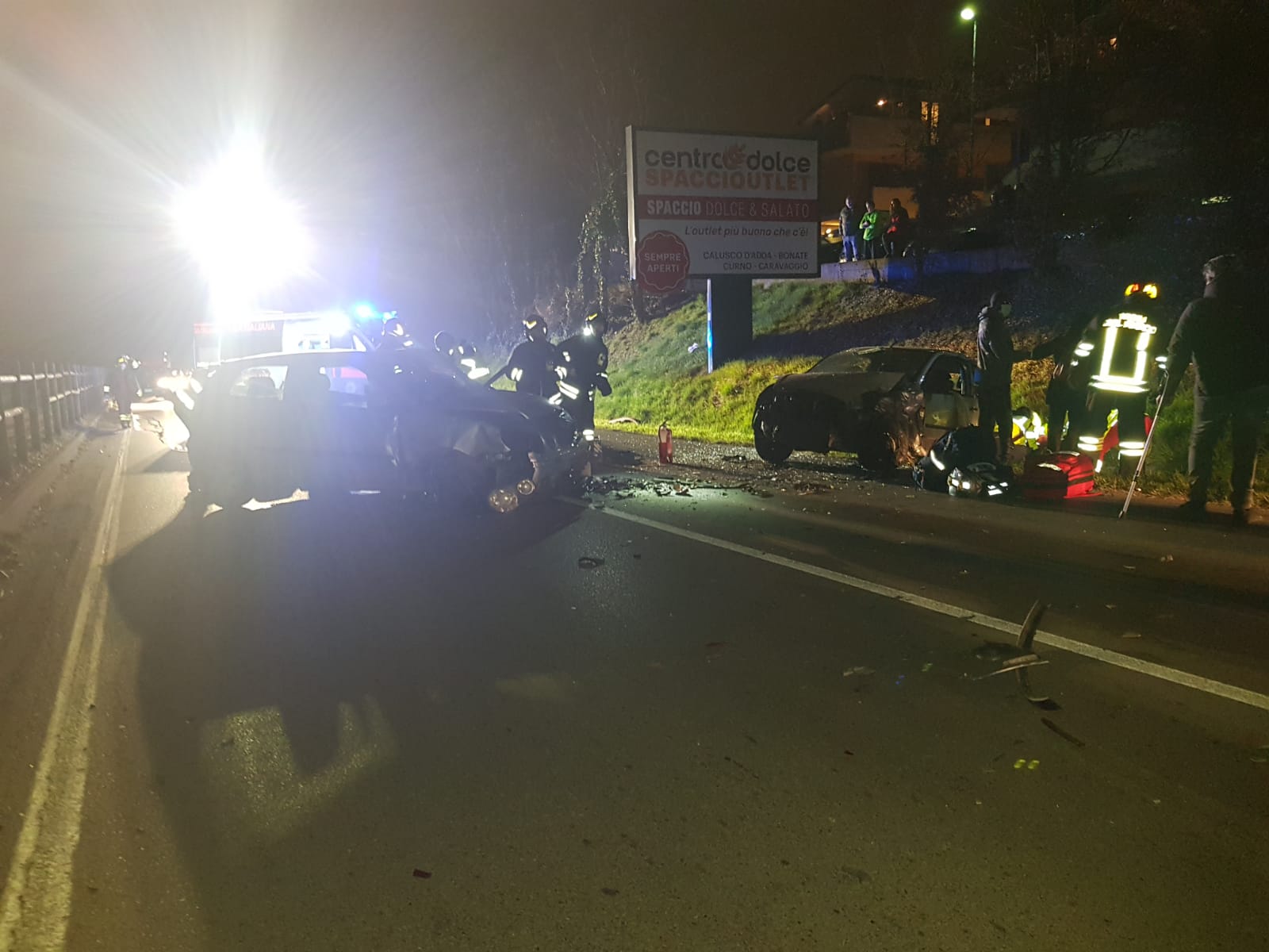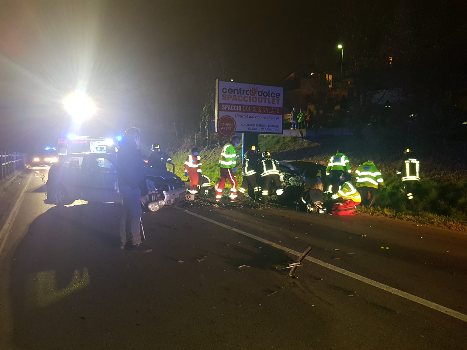 Ignota al momento la dinamica dello schianto frontale tra una Volkswagen Polo guidata da una donna e un’auto guidata da un ragazzo. L’impatto, avvenuto in via Milano (Provinciale 166) a Terno d’Isola alle 21.30, è stato devastante. I due mezzi sono distrutti e i due conducenti intrappolati tra le lamiere.