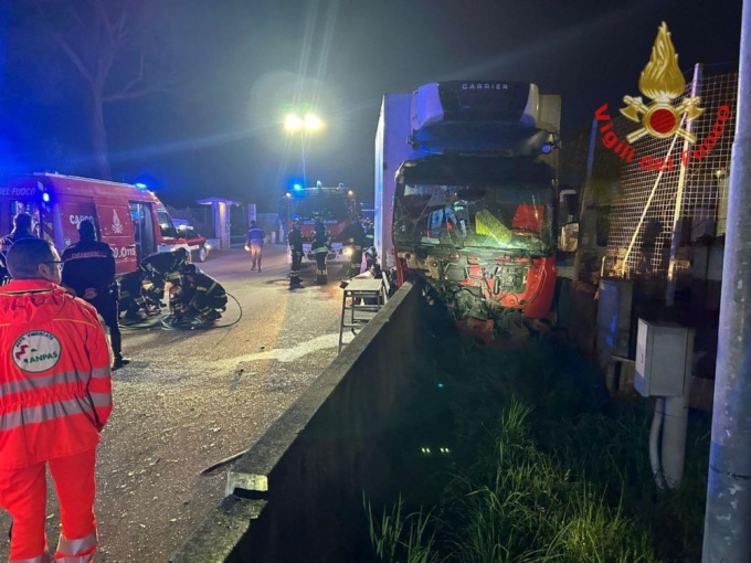 L’autista, 44 anni, è stato estratto vivo dalle lamiere dell’abitacolo e nonostante il terribile impatto non ha riportato ferite particolarmente gravi.