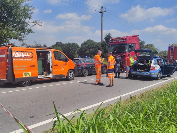 Secondo una prima ricostruzione dei fatti il sinistro, che ha visto coinvolto un mezzo pesante, si è verificato sulla SP170 (Via Rivierasca dell’Adda) attorno alle 14.20.