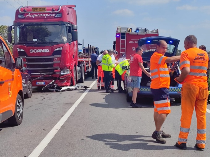 Purtroppo, le condizioni della donna alla guida dell’auto sono apparse subito drammatiche; tanto da portare il personale sanitario a constatarne il decesso. Illesi, invece, i conducenti del tir e della seconda autovettura coinvolta. Per loro, non è stato necessario il trasporto in ospedale.