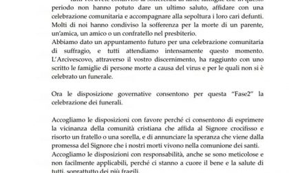 “Le Parrocchie comunicheranno l’orario delle Esequie al Comune competente affinché si possano effettuare gli eventuali controlli: in modalità collaborativa e nel rispetto dell’esercizio della libertà di culto e del Concordato si chieda che tali controlli si effettuino solamente prima o dopo la celebrazione. Prima dell’accesso in chiesa dei partecipanti alle esequie funebri, sia garantita la misurazione della temperatura corporea, attraverso un termometro digitale o un termo-scanner. Questa disposizione è richiesta anche per le celebrazioni all’aperto. Pertanto non è consentito l’accesso a chi risulti avere una temperatura corporea superiore ai 37,5°C” si legge nella nota diffusa dall’Arcidiocesi di Milano. Decisamente inedito sarà anche il momento dell’Eucarestia, che verrà posata dal sacerdote tra le mani dei fedeli: questi ultimi potranno abbassare la mascherina solo per riceverla in bocca e poi dovranno rimetterla. Non ci sarà invece lo scambio del gesto di pace. Molte le prescrizioni anche per l’igiene dei vasi sacri e della biancheria dell’altare.