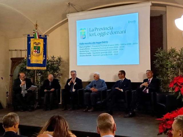 I primi 30 anni della Provincia di Lecco: serata “Amarcord” a Villa Greppi. Si è svolto ieri pomeriggio, lunedì 1° dicembre 2025, nell’ex granaio di Villa Greppi a Monticello Brianza, il convegno per celebrare i 30 anni della Provincia di Lecco. Un evento che ha visto la partecipazione di diverse autorità, tra cui anche il ministro per gli Affari regionali e le Autonomie Roberto Calderoli, che hanno ripercorso tutte le varie fasi attraversate dall’ente in questi decenni, dalla quella iniziale alla legge Delrio, fino ad arrivare agli ultimi anni.