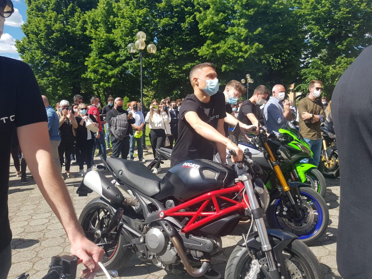 Un omaggio che, sul sagrato, si è fatto concreto, quando gli amici di Mirco, con indosso la maglietta di OcriMMoto, il canale youtube di Fumagalli, hanno acceso le motociclette facendo rombare i motori. Un suono che Mirco amava e che oggi lo ha accompagnato nel suo ultimo viaggio, insieme ad un lungo applauso e al lancio in cielo di palloncini candidi.