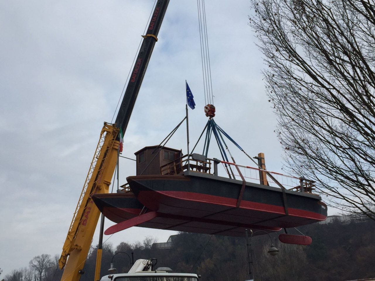 Nella mattinata di ieri, 19 febbraio 2021, è stato nuovamente collocato nell’Adda e nel giro di pochi giorni tornerà a navigare regolarmente fra le sponde di Imbersago e Villa d’Adda.
