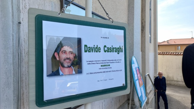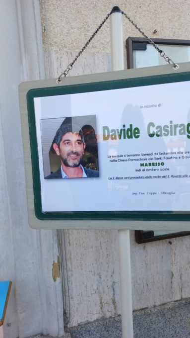 “Siamo in moltissimi qui oggi per salutare Davide, – ha detto don Guido Limonta nell’omelia – che a soli 45 anni si è trovato con un futuro mancato. Un uomo che a soli 45 anni ci lascia soli nel continuare questa litania, nella vita e nel suo dolore. Non possiamo infatti non constatare che questo sia un dolore inconsolabile, aggravato dalla giovane età di Davide e dalla sua sorte improvvisa e cruda. In queste circostanze così tristi il buio avvolge tutto: mentre i non credenti possono solo maledire questo dolore, per i fedeli la luce del signore dona speranza perché Gesù vuole che noi conosciamo la sua gloria”.