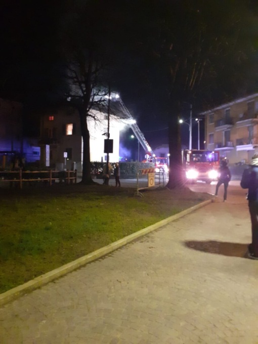 Ignote al momento le cause del rogo che hanno avvolto l’ultimo piano e il tetto dell’abitazione nota come “ex Airoldi”.