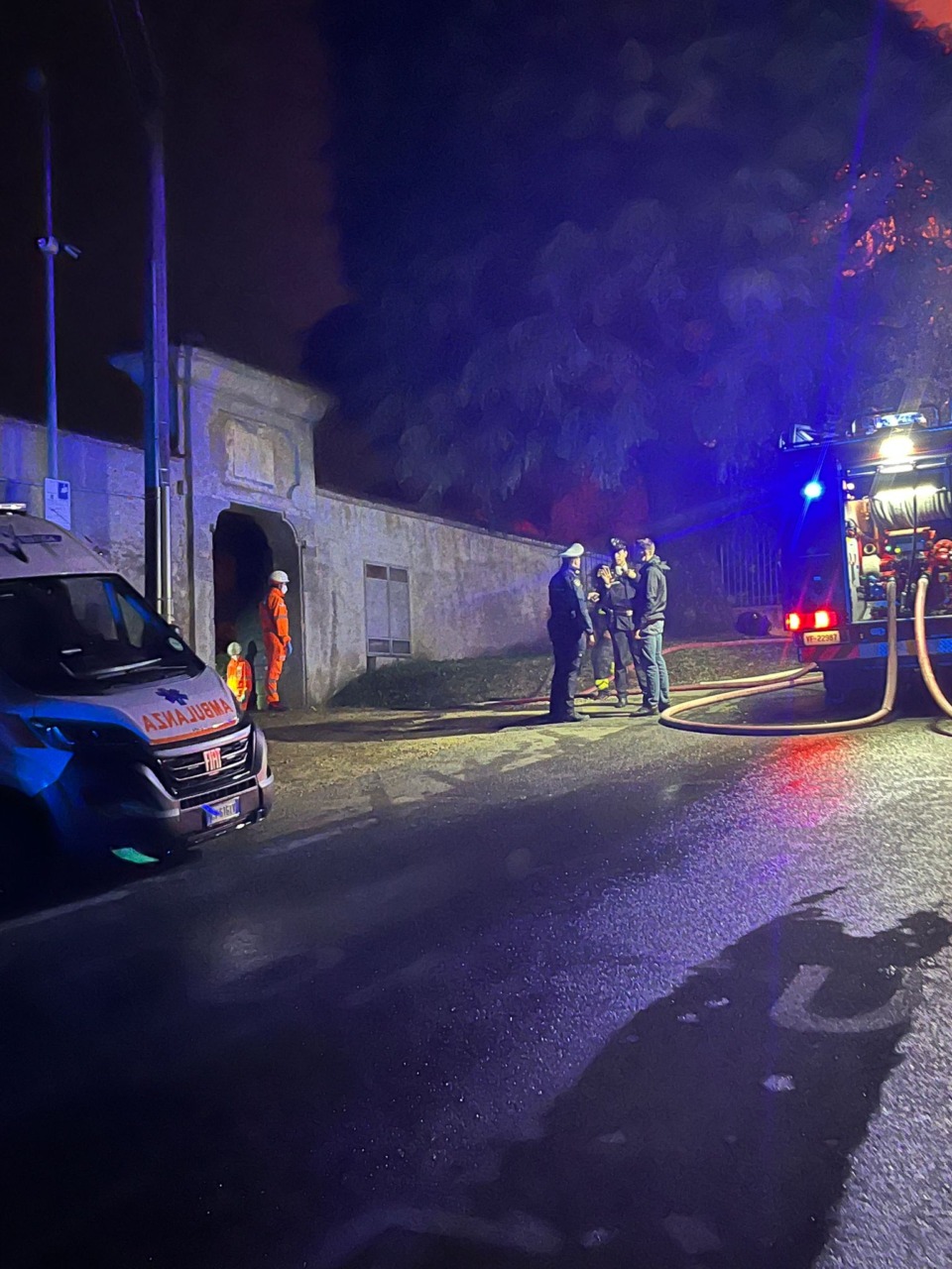 Enorme il dispiegamento di mezzi dei Vigili del fuoco in via Lissolo – ben nove – impegnati per tutta la serata con diverse squadre per cercare di domare le fiamme, che hanno distrutto parte dell’immobile.