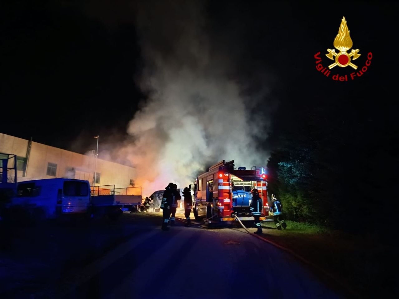 Le squadre del Comando dei Vigili del Fuoco di Monza e Brianza sono intervenute a Triuggio nella notte tra sabato 4 e domenica 5 aprile 2026, a pochi minuti dalla mezzanotte dopo che era scattato l’allarme per un incendio divampato in via Alighieri. Oltre a distruggere alcuni veicoli parcheggiati nelle adiacenze di un capannone industriale, le fiamme hanno interessato anche cataste di materiale ligneo presenti all’interno dell’area, in prossimità della recinzione perimetrale.