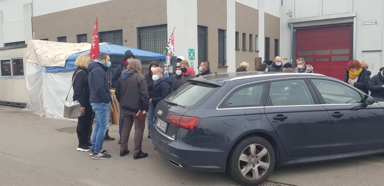 Incidente davanti alla Voss durante il picchetto degli operai: l’auto dell’amministratore delegato ha urtato un sindacalista