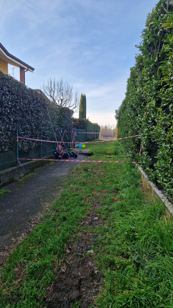 Al transito della persona, il suolo ha ceduto sotto il peso della stessa, causando la formazione di una voragine all’interno della quale la persona è precipitata, raggiungendo una profondità stimata di circa 3–4 metri.