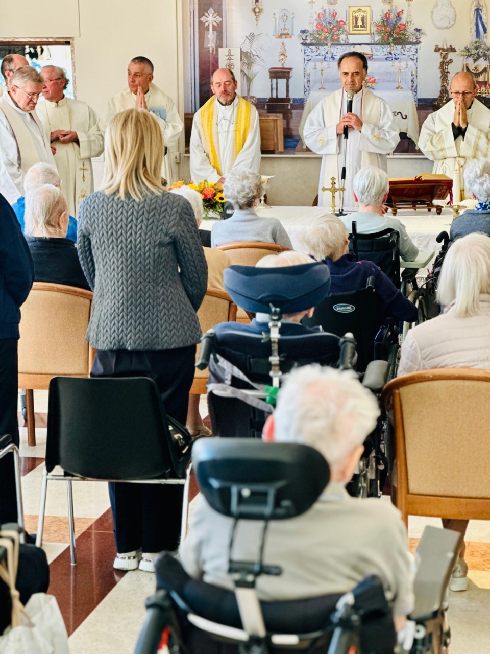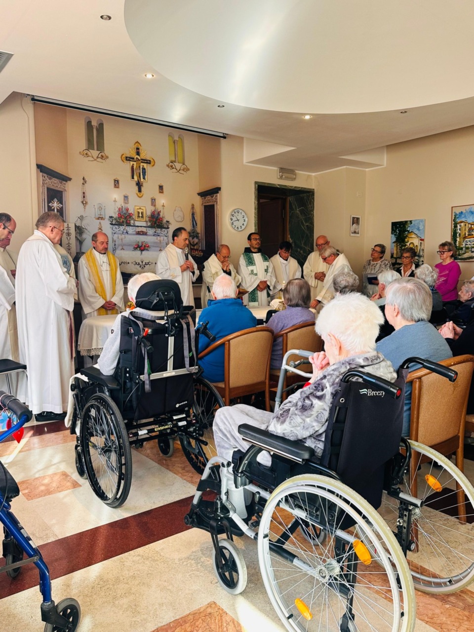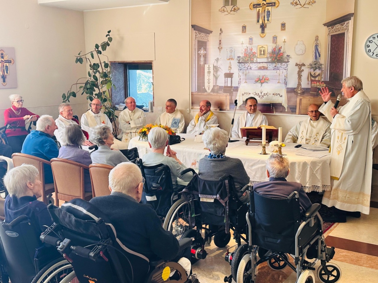 Questa mattina, martedì 7 ottobre 2025, undici sacerdoti si sono riuniti per pregare insieme per i nostri residenti, per gli operatori che ogni giorno si prendono cura di loro, per i volontari e per tutti gli ammalati. Un momento comunitario intenso e partecipato, che rinnova quel legame profondo con il territorio da cui proviene la maggior parte dei nostri ospiti e che dà forza al nostro quotidiano impegno di cura.