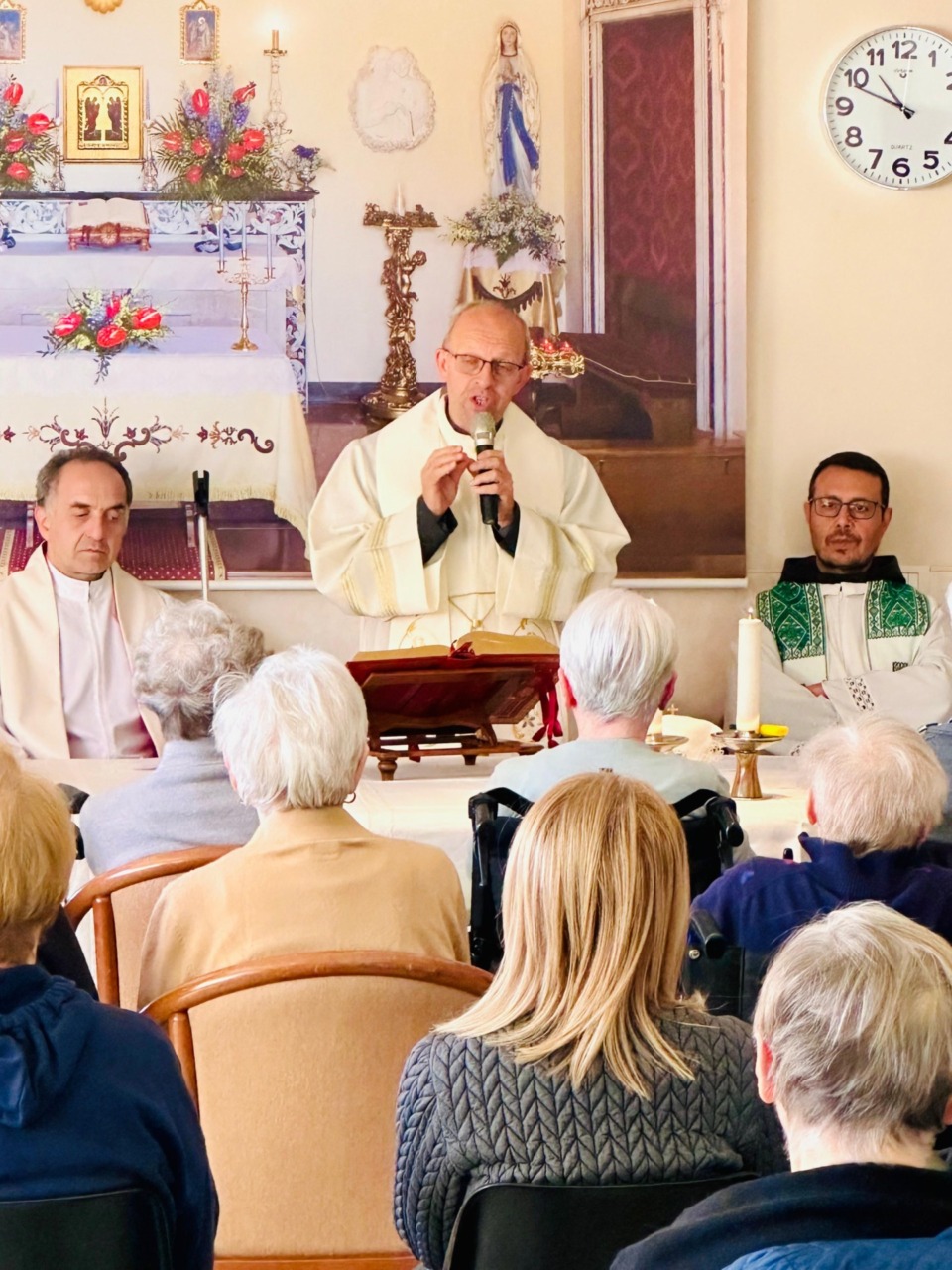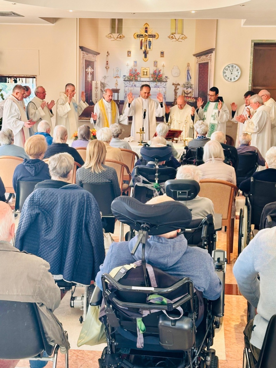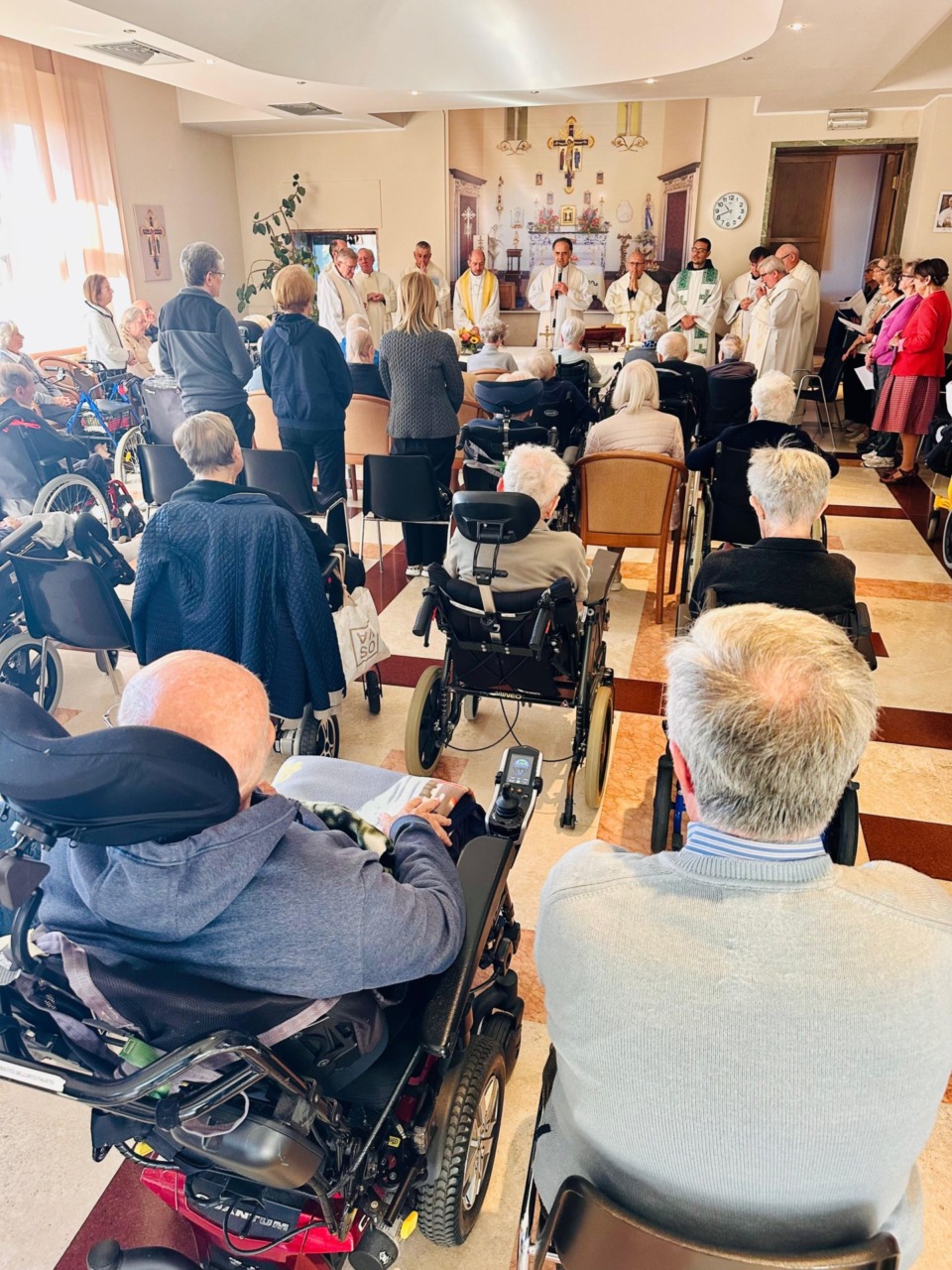 Questa mattina, martedì 7 ottobre 2025, undici sacerdoti si sono riuniti per pregare insieme per i nostri residenti, per gli operatori che ogni giorno si prendono cura di loro, per i volontari e per tutti gli ammalati. Un momento comunitario intenso e partecipato, che rinnova quel legame profondo con il territorio da cui proviene la maggior parte dei nostri ospiti e che dà forza al nostro quotidiano impegno di cura.