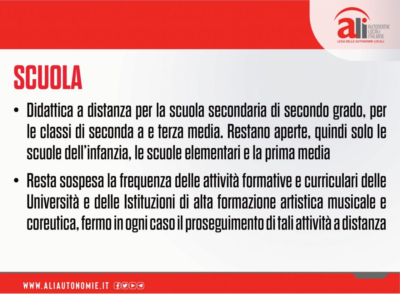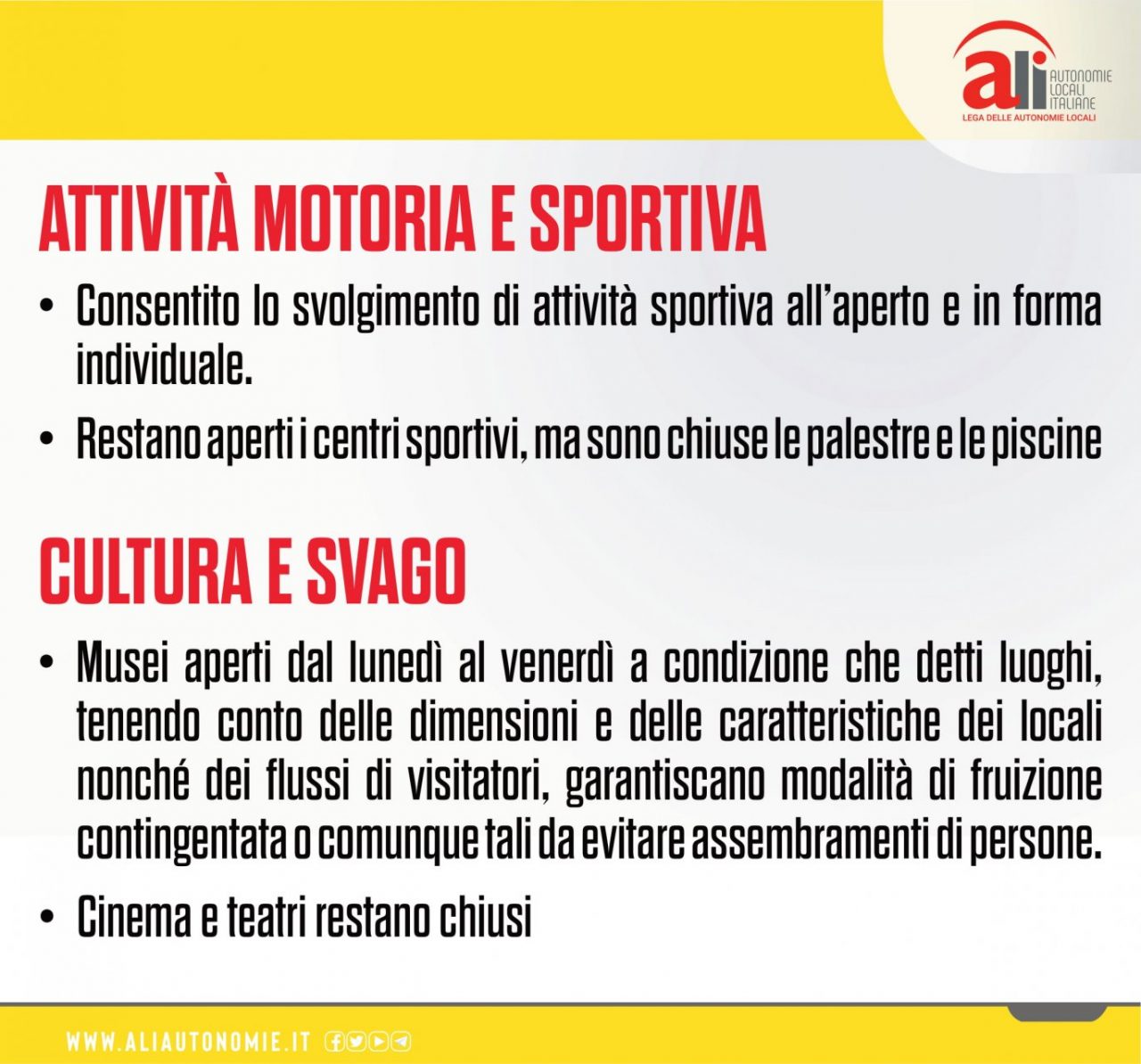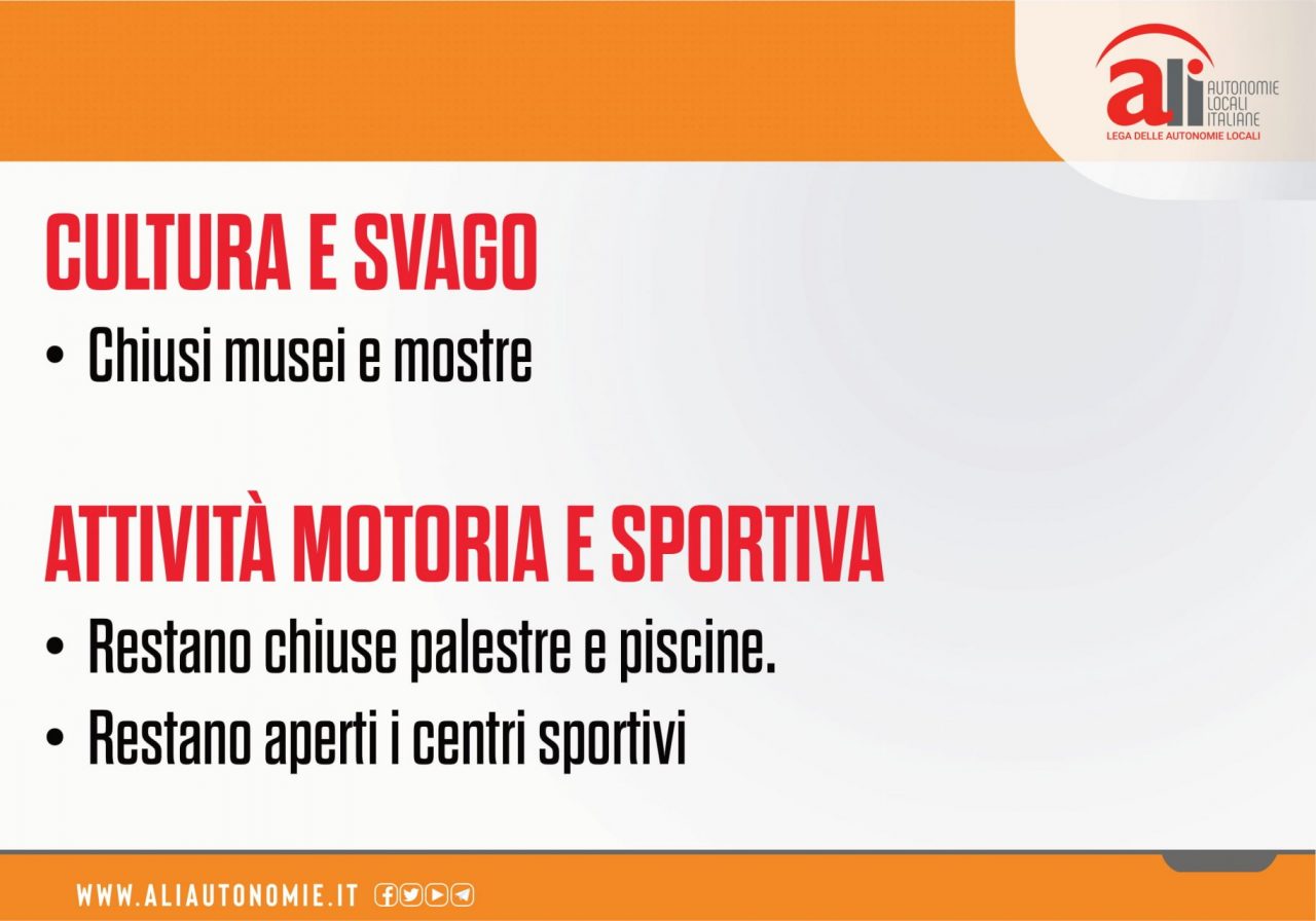 Coprifuoco dalle 22 alle 5, durante il giorno vietato uscire dal Comune sia in zona rossa che in zona arancione. Sia in zona rossa che in zona arancione però resta la deroga dei 30 chilometri per chi vive in Comuni sotto i 5mila abitanti.