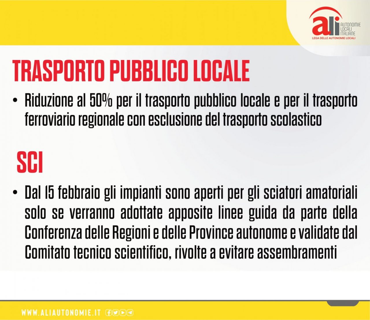 Tornano le crociere, mentre gli impianti sciistici rimarranno chiusi fino al 15 febbraio. Nessuna riapertura invece per palestre e piscine.