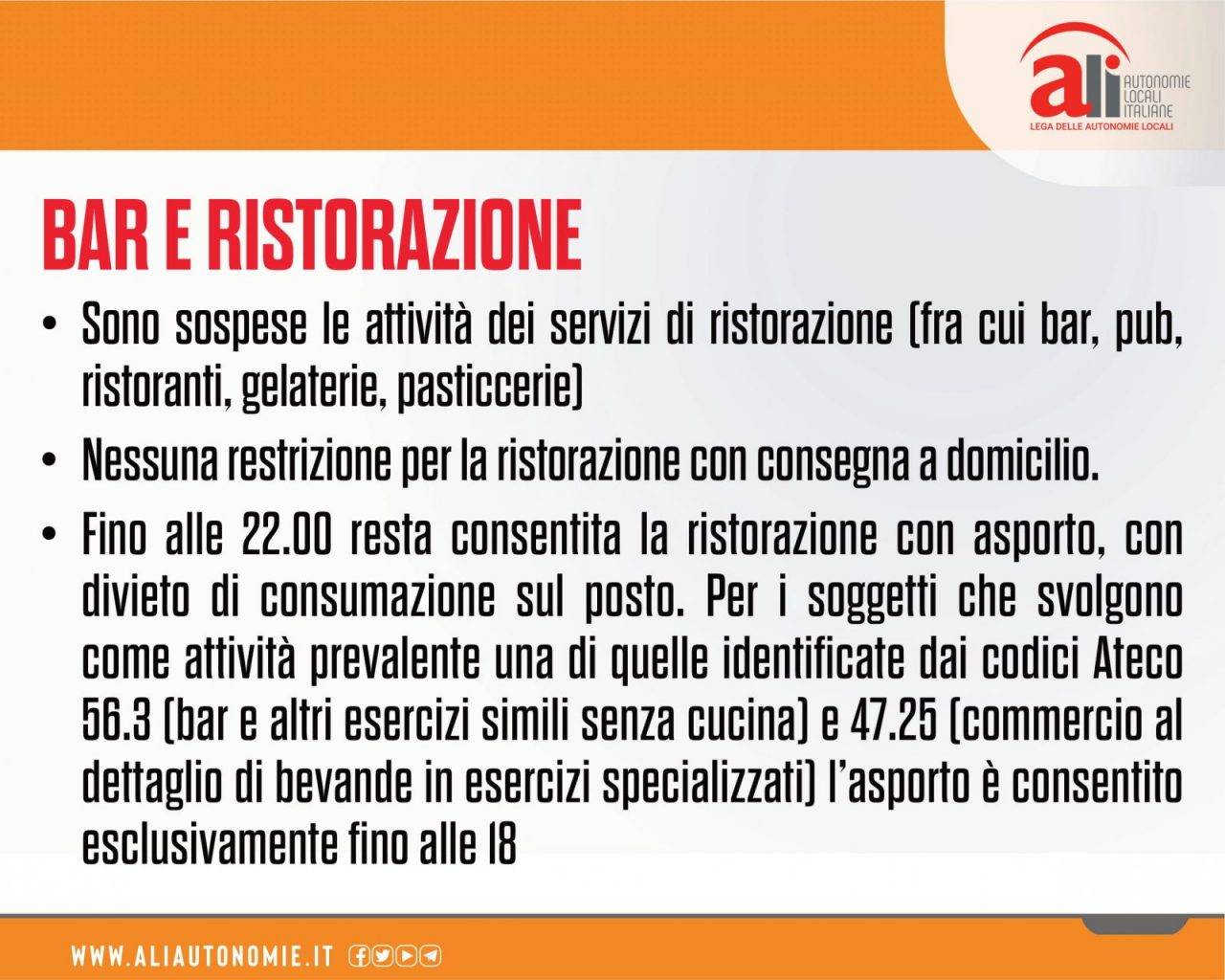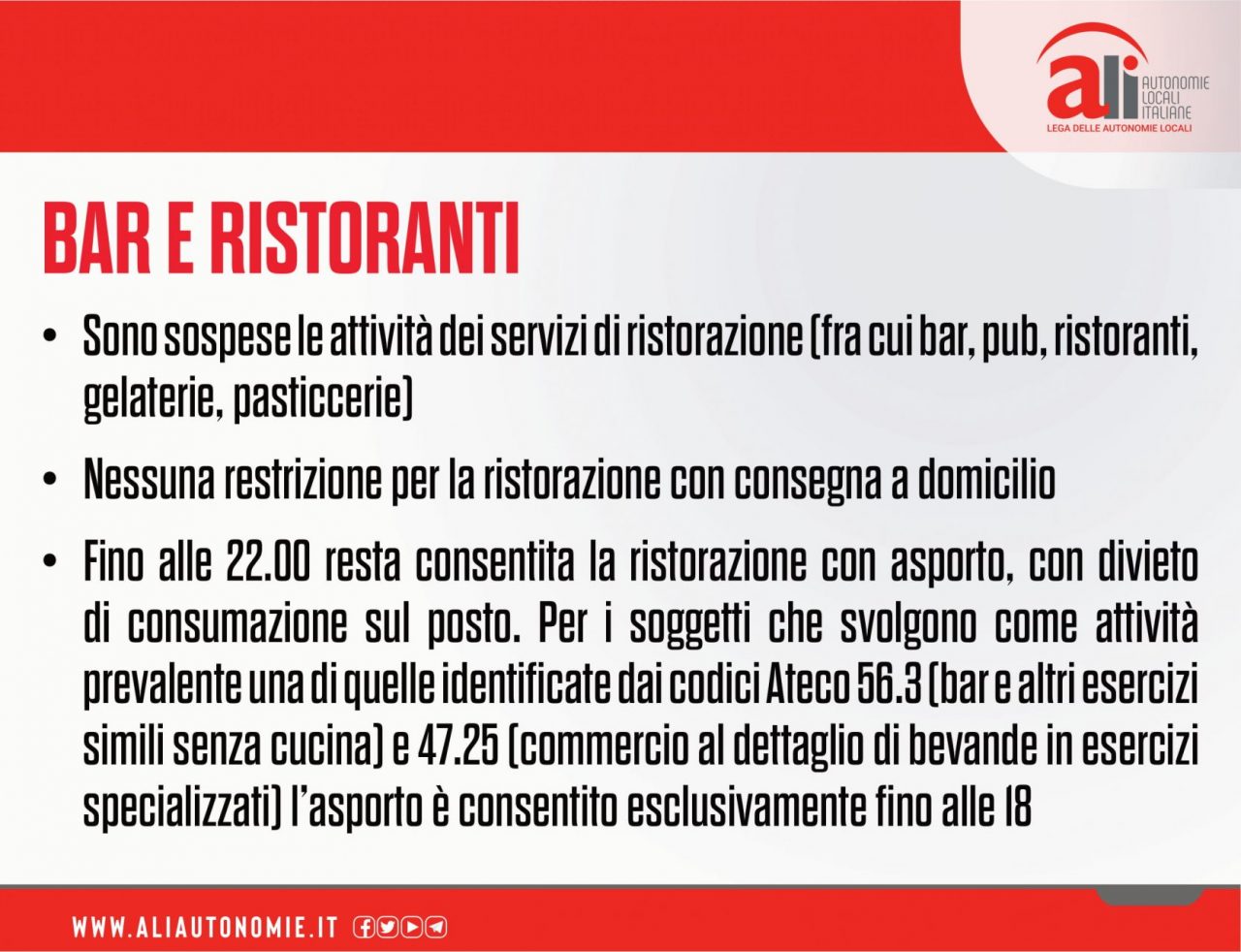 Dopo le 18 i ristoranti potranno continuare a lavorare con asporto e consegna a domicilio. I bar, invece, anche in zona gialla potranno effettuare consegne a domicilio, ma l’asporto potrebbe essere vietato dalle 18 per evitare assembramenti da aperitivi.