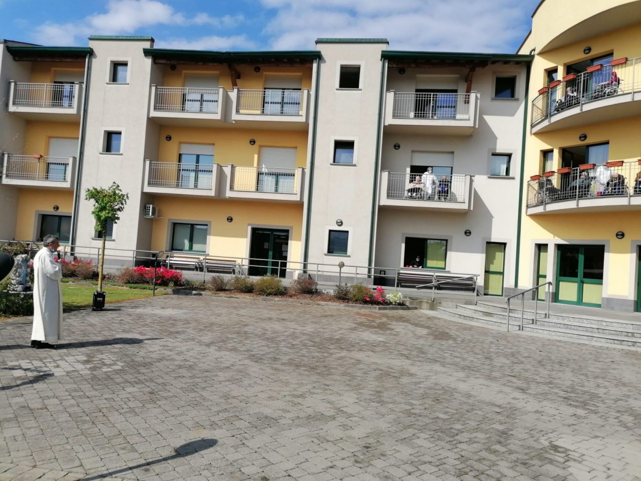 “Stamani – spiega la direzione della Casa famiglia – il parroco don Carlo Motta si è recatoin struttura e, tenendo il distanziamento sociale, ha recitato insieme ai residenti il Santo Rosario. Don Carlo ha letto un passo del Vangelo e i residenti, affacciati sui balconi delle proprie camere, si sono subito uniti nel momento di riflessione spirituale con il religioso. Si è trattato di un breve momento assai intenso. Per i nostri residenti poter tornare ad avere, seppur a distanza, la presenza del nostro parroco, da sempre un punto di riferimento, ha rappresentato un segno di quella normalità di cui tutti noi abbiamo bisogno”.