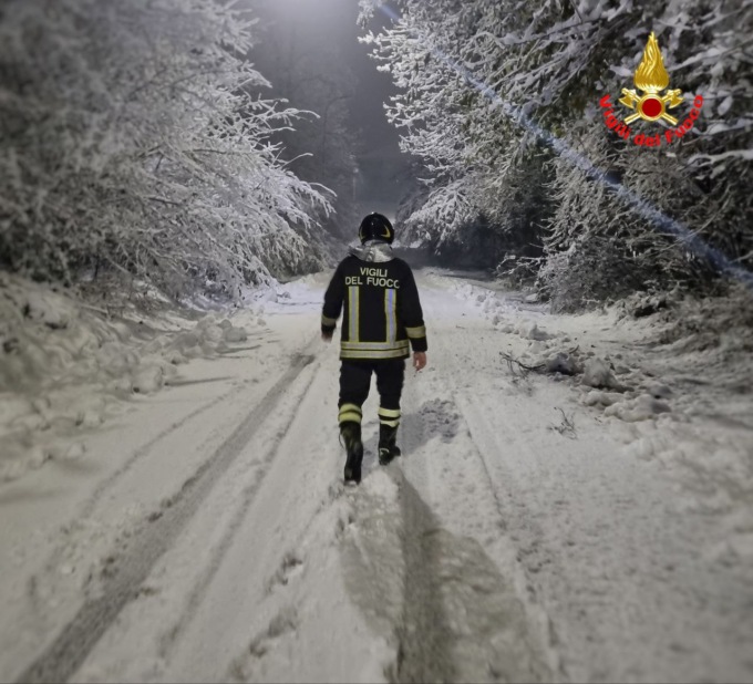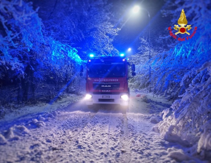 Auto fuori strada, camion bloccati e alberi caduti per l neve: notte intensa per i pompieri