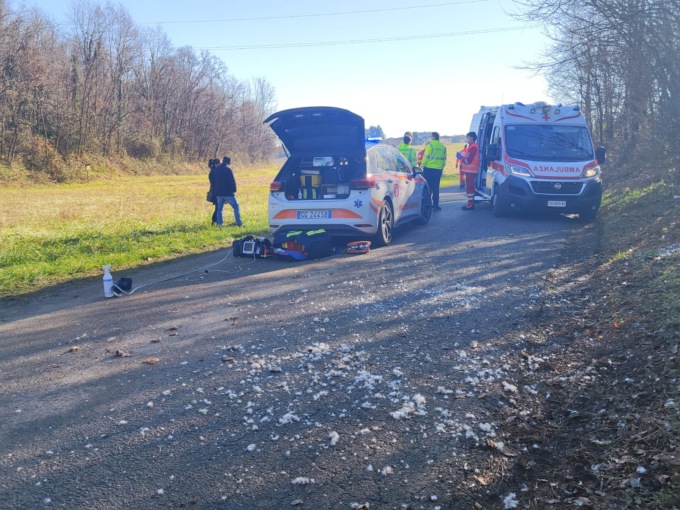 L’incidente è avvenuto poco prima delle 12 in via Alfieri, una strada che si snoda in mezzo ai campi nella frazione di Valaperta.