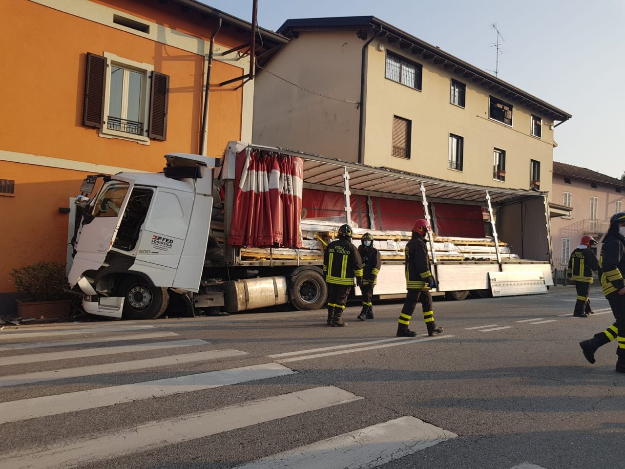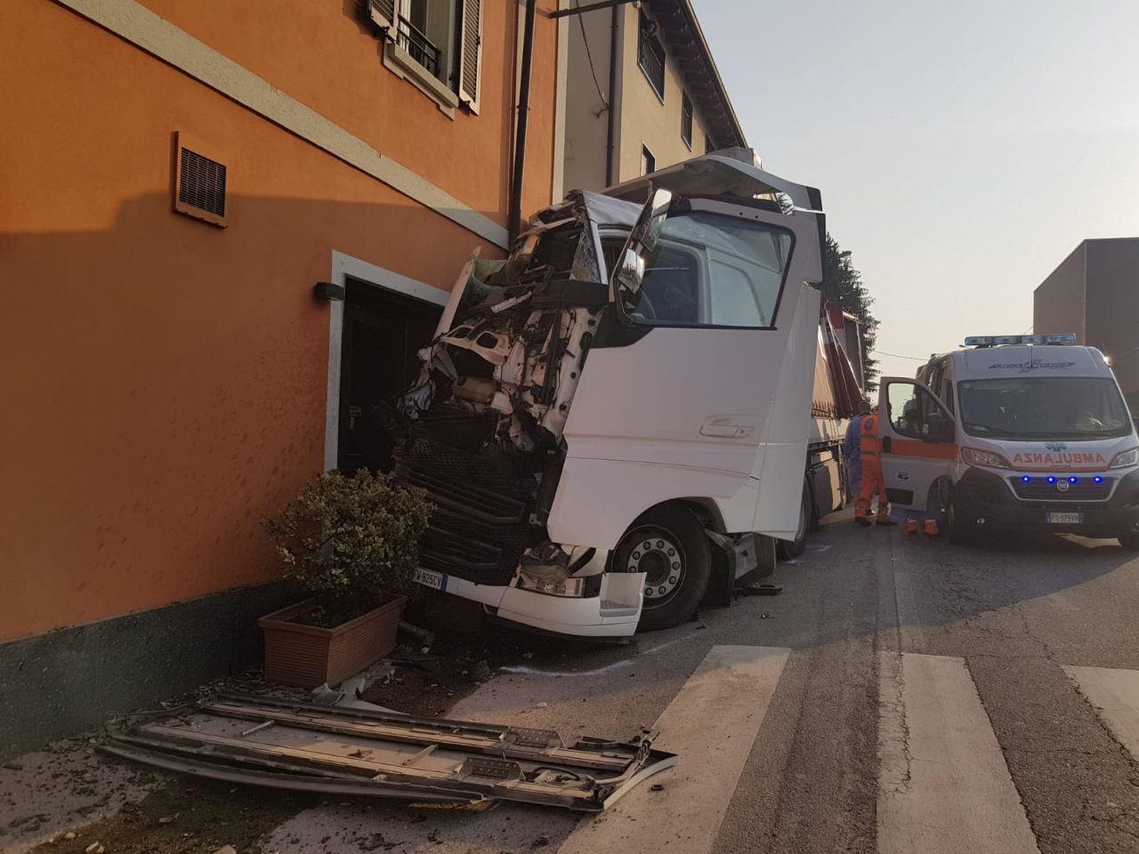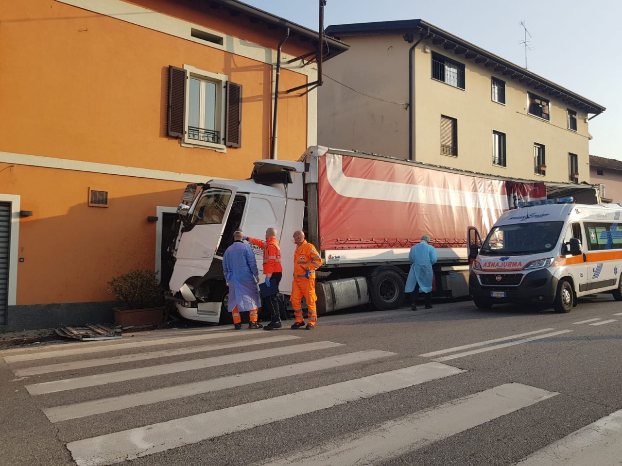 Paura a Calco: camion esce di strada e si schianta contro una casa