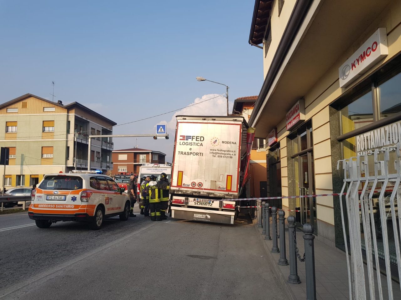 Il camion ha concluso la sua corsa contro il muro della palazzina che ospita anche il Big Bar. Subito gli automobilisti in transito hanno chiesto aiuto mettendo in moto la macchina dei soccorsi. Sul posto si sono precipitati i Vigili del Fuoco con una autopompa e una autogru da Lecco e una seconda autopompa dal distaccamento di Merate.