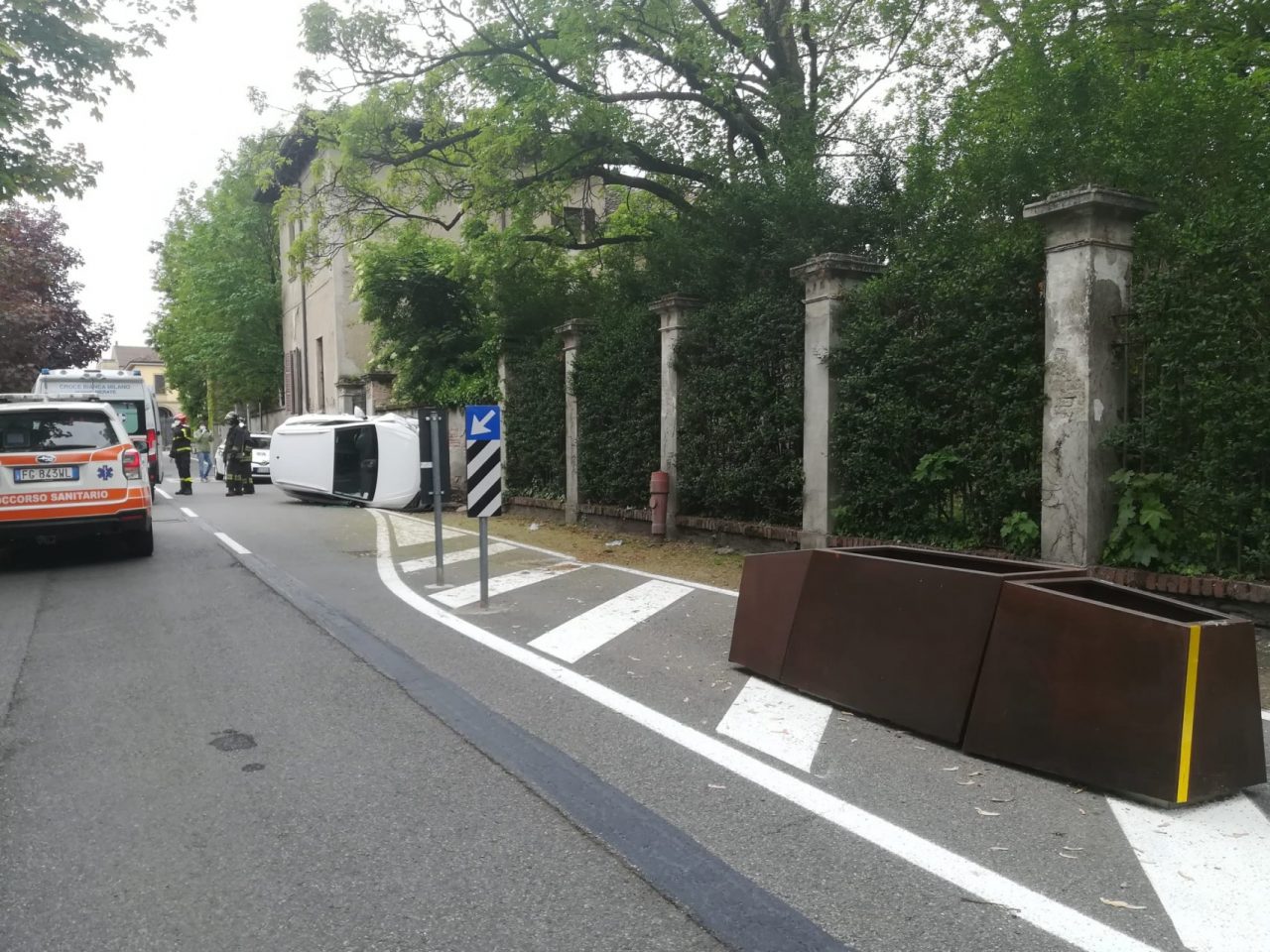 Paura intorno alle 12.20 di oggi, lunedì 27 aprile 2020, per un’auto ribaltata. L’incidente è avvenuto a Osnago, in via Roma, all’altezza del nuovo senso unico alternato delimitato poche settimane fa con delle fioriere.