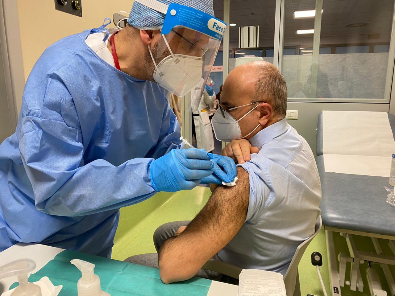 Al Papa Giovanni, invece, il primo a essere vaccinato è stato Guido Marinoni, presidente dell’Ordine dei medici della provincia di Bergamo. Poi è stato il turno degli altri rappresentanti delle professioni sanitarie: il presidente dell’Ordine degli Infermieri, Gianluca Solitro; Guido Muzzi, presidente dell’Ordine TSRM-PSTRP della provincia di Bergamo (Ordine dei Tecnici Sanitari di Radiologia e delle professioni sanitarie tecniche, della riabilitazione e della prevenzione) e tecnico di Radiologia al Papa Giovanni. A seguire è stato il turno di Luigi Greco pediatra bergamasco e membro del CTS regionale.