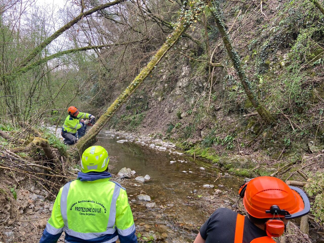 “Oggi (ieri, ndr) giornata di lavoro per una decina di Volontari del Gal Protezione civile Caprino/Cisano Bergamasco: hanno tagliato diverse piante cadute nel torrente Sonna. Grazie di cuore!