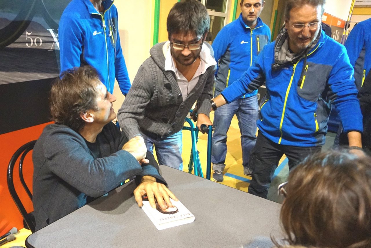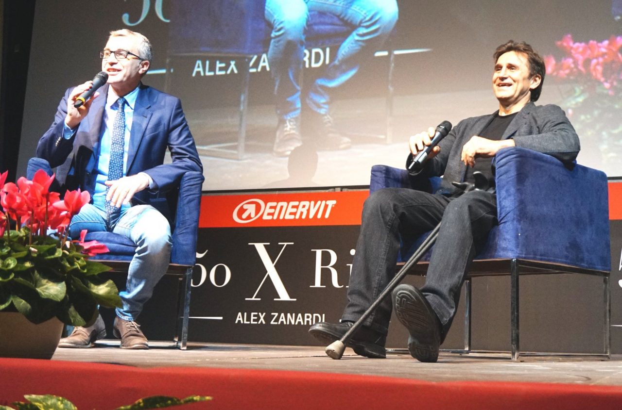 Successivamente la serata è proseguita con l’intervista di Alex Zanardi con il giornalista Gianluca Gasparini, co-autore del libro «Volevo solo pedalare» sulla sua storia. La domanda cardine della serata è stata: come si fa a vincere due ori olimpici a 50 anni, contro avversari molto più giovani? «Più passa il tempo più sei capace di gestire l’elemento determinante che ti fa vincere – spiega Zanardi – Sai attaccare al momento giusto, punti sulla tattica, sulla pazienza. A 25 anni sei pieno di energie, ma non hai ancora l’esperienza giusta per gestirle al meglio». Un altro tema ricorrente della serata è stata la differenza tra passione e ambizione. «L’ambizione può essere quell’energia in più che trovi a pochi metri dalla linea del traguardo per vincere una volata, ma senza la passione non arrivi a quel momento in cui puoi sfruttare l’ambizione: se non fai le cose con passione sei già perdente in partenza perché ti manca qualcosa rispetto agli altri – ha raccontato il campione bolognese – Per me è fondamentale: infatti ogni giorno mi alzo dal letto guidato dalla mia grande passione». Infine Zanardi ha voluto lanciare un appello a tutti i genitori. «Sostenete gli interessi dei vostri figli: mio papà mi regalò a 14 anni un go-kart e per questo gliene sono ancora grato». In conclusione Zanardi ha firmato le 400 copie del suo ultimo libro, vendute durante la serata e i cui proventi saranno destinati ai terremotati del centro Italia.