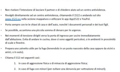 É importante che in questa fase l’informazione, attraverso gli organi di stampa, raggiunga in maniera capillare ogni donna che sia in pericolo tra le mura domestiche. Nelle linee guida che si prega di diffondere sono elencati numeri, siti e app che possono essere di aiuto immediato, che si aggiungono ai numeri di riferimento dei centri di aiuto presenti sul nostro territorio. É bene sapere che in situazioni di pericolo è prevista la possibilità di lasciare la casa per motivi di estrema necessità, come è quella di vivere una situazione di grave pericolo in casa, rivolgendosi alle forze dell’ordine. Non siete sole! É il messaggio che si spera raggiunga e rassicuri le donne in difficoltà a causa di violenza intrafamiliare.