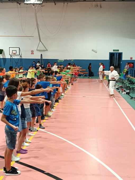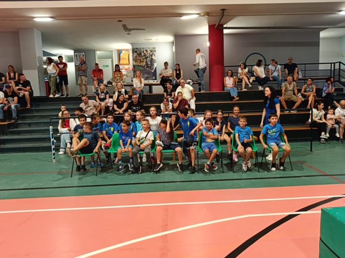 Durante la serata sono stati presentati i gruppi dei partecipanti caratterizzati da colori diversi: rossi per i bambini di prima elementare, blu per quelli di seconda e terza, verdi per quarta e quinta, bianchi per le medie e arancioni per quelli che hanno frequentato part-time. I bambini hanno quindi potuto mostrare ai genitori presenti alcune delle cose imparate, da una dimostrazione di karate, ad attività di atletica, mentre sul fondo della palestra erano appese alcune delle opere realizzate dai piccoli partecipanti.